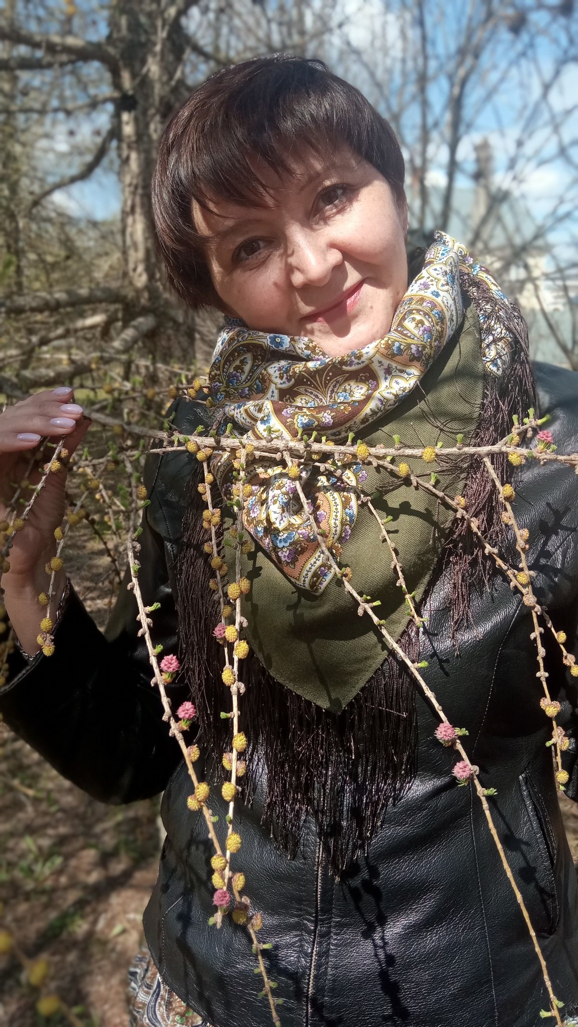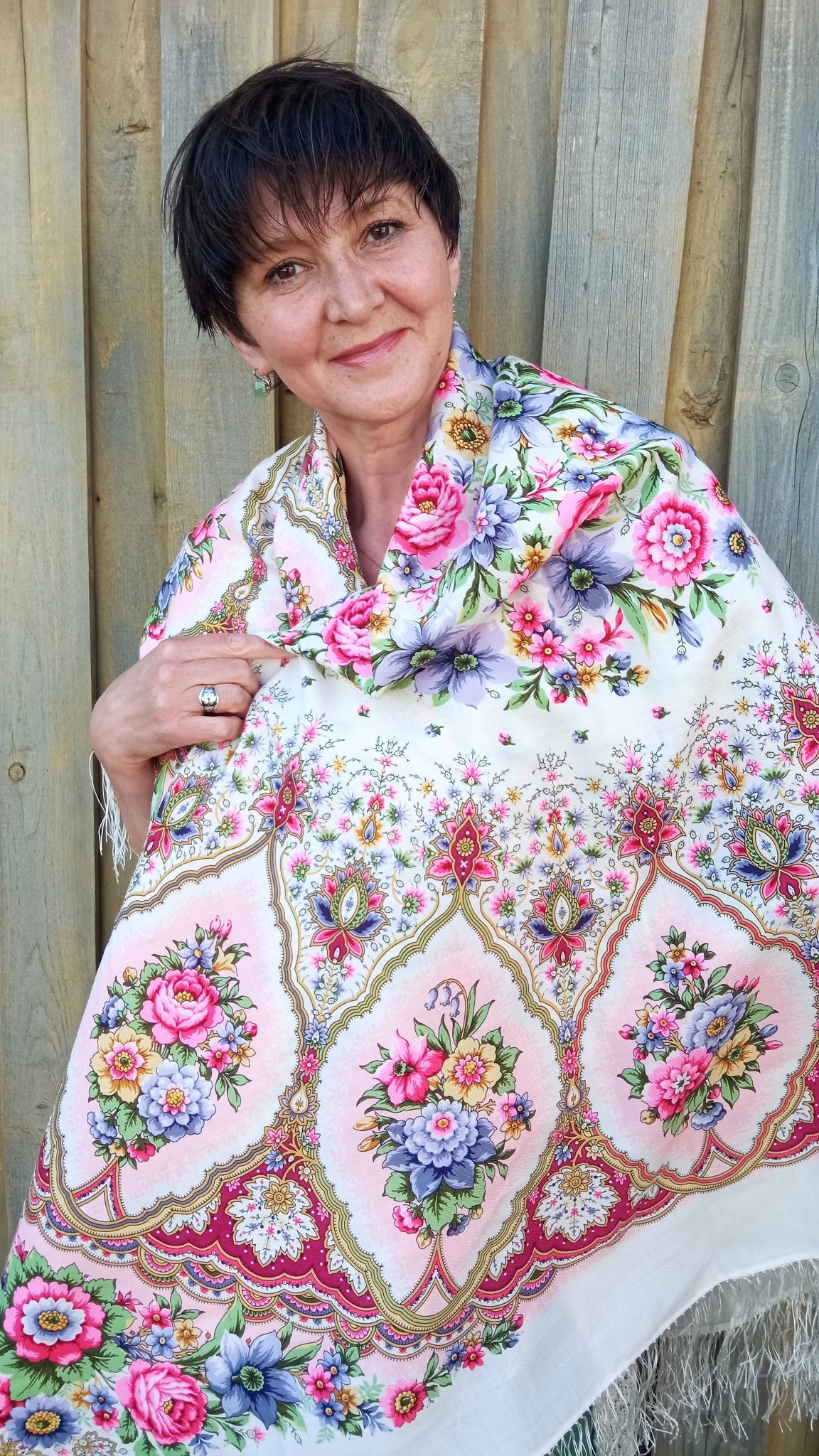 Larna _Танечка, Цветочный веер чудесный платок, Глаза сияют счастьем. Запах сирени чувствуется через экран! Браво художнику и браво фотографу и ещё раз браво тебе Танечка за то, что показала это чудо!
