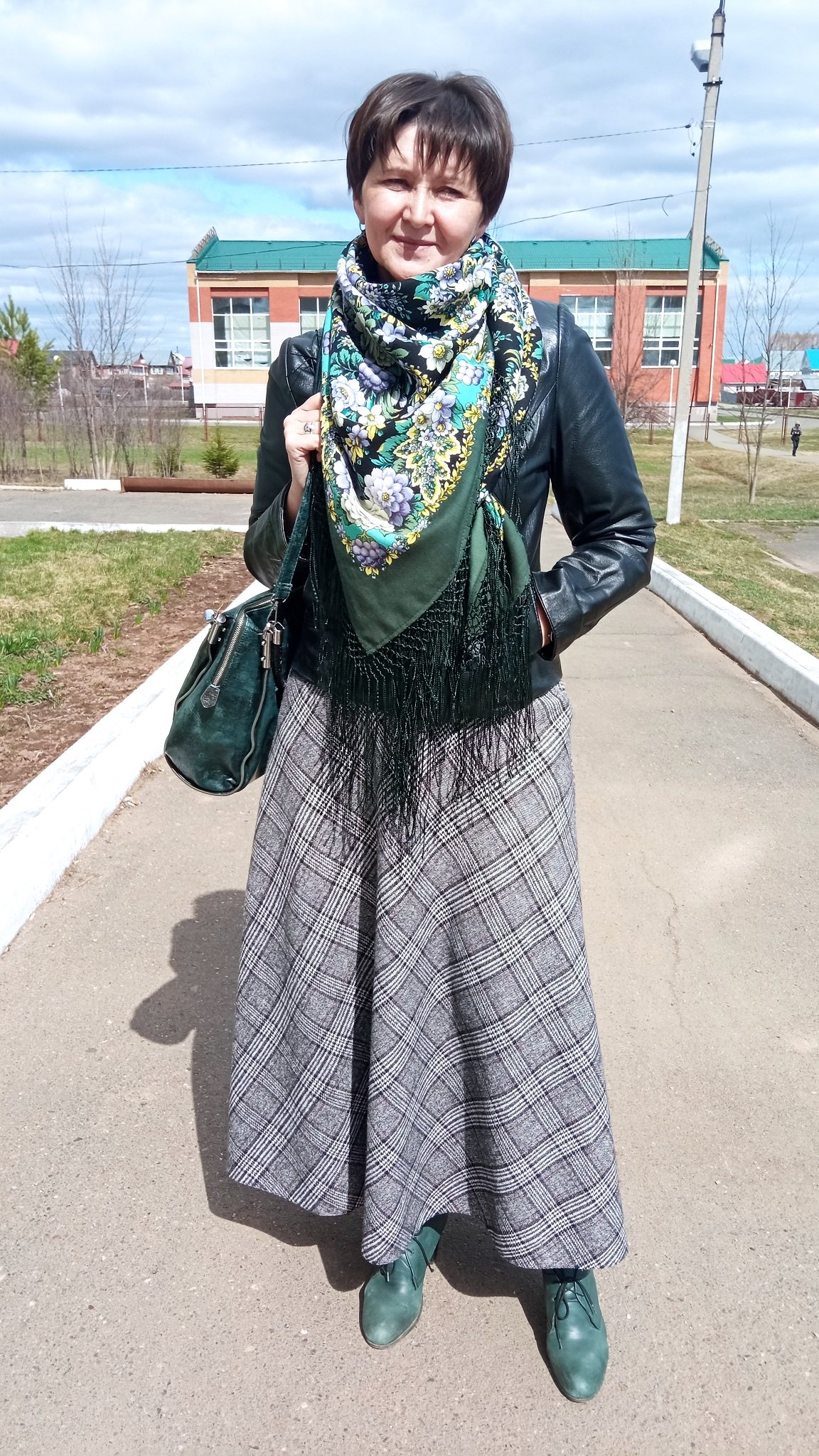 Таня Имбирь, серая юбка к зеленым лукам расчудесна!