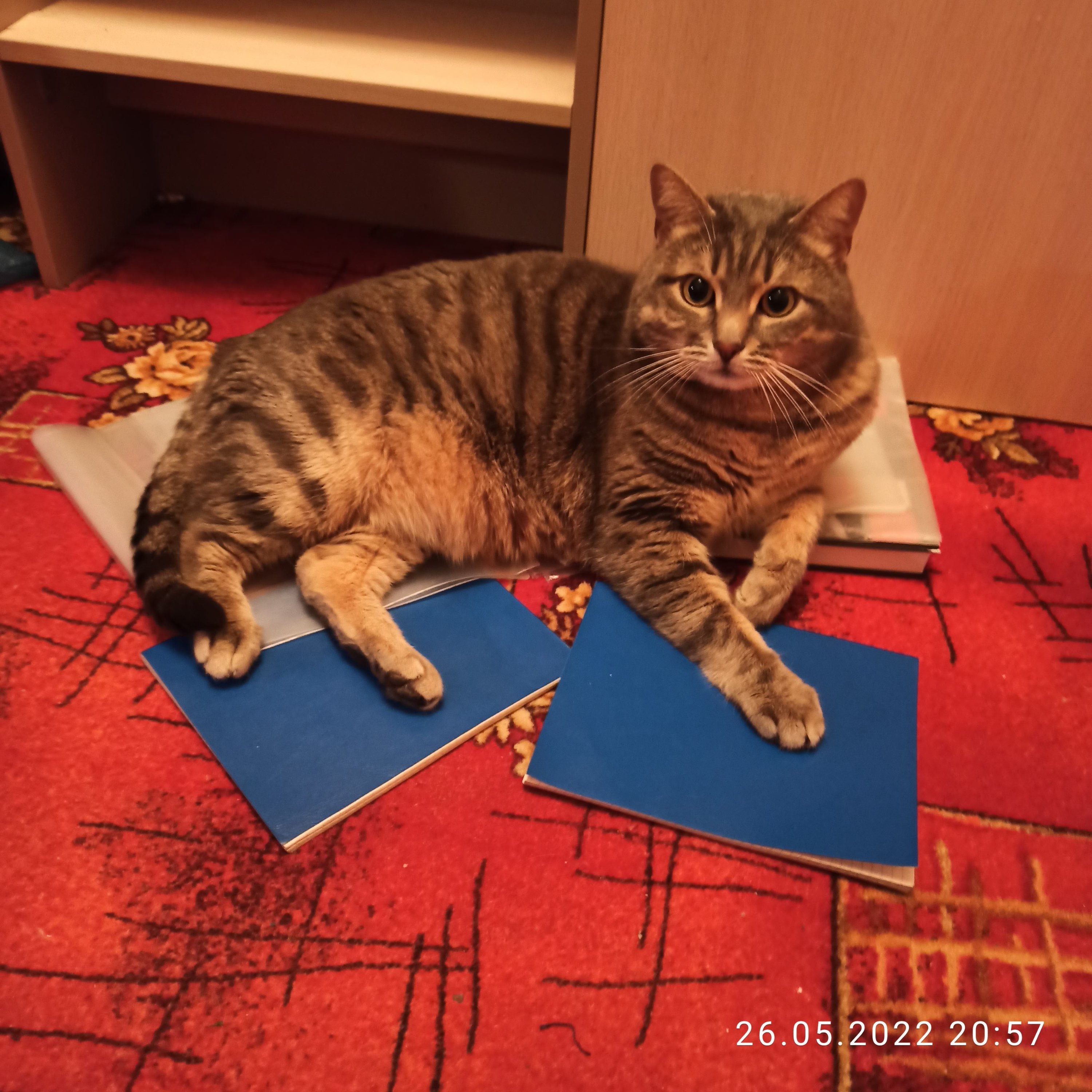 Мой самовольник сегодня бегал-скакал, залез на полку, скинул книжки с тетрадками, да ещё и улёгся на них с чувством выполненного долга