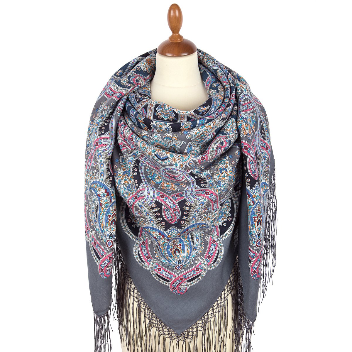 Платок шерстяной с шелковой бахромой, 146x146 см
