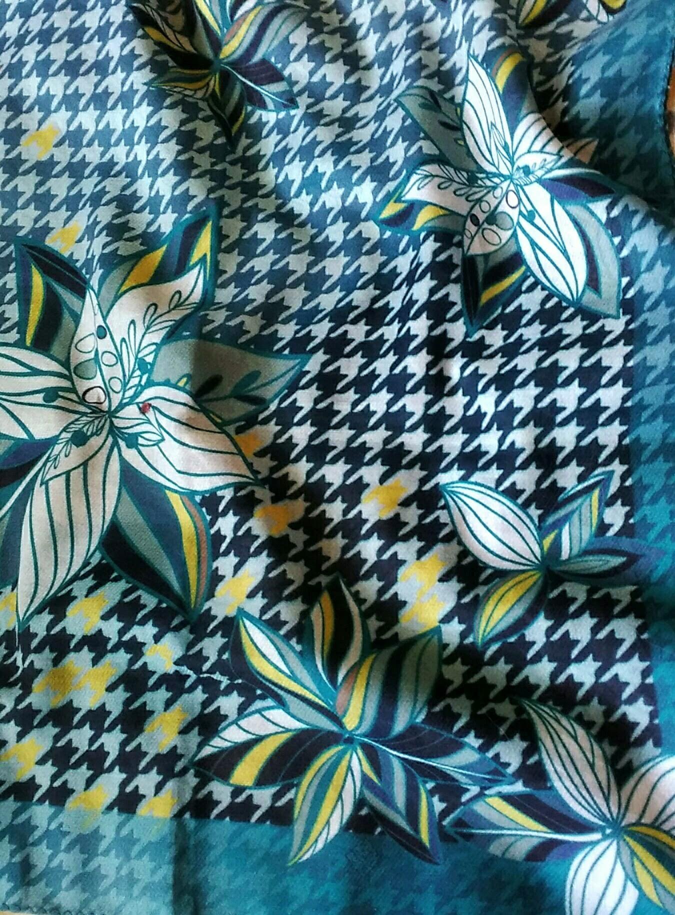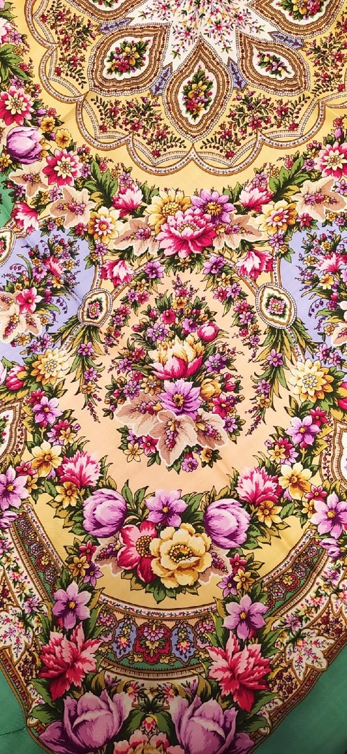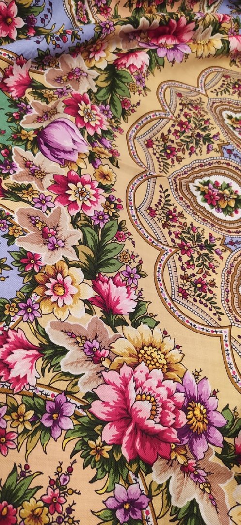 Юля, да, шаль чУдная! Писала и про вас думала, вам пойдёт! Цвета на фото получились близко к реальным, может даже реальные, старалась цвет передать настоящий. Мне очень понравилась! Ничего бледного, спокойная-да, контрастная, печать четкая, узоры красивущие! У меня печать 30.05.