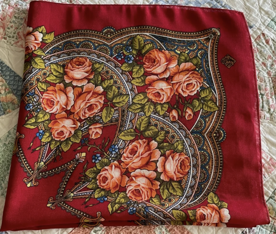 Чудесный платок, рисунок как младший брат Княжеского, а еще напоминает знаменитые серьги-калачи.