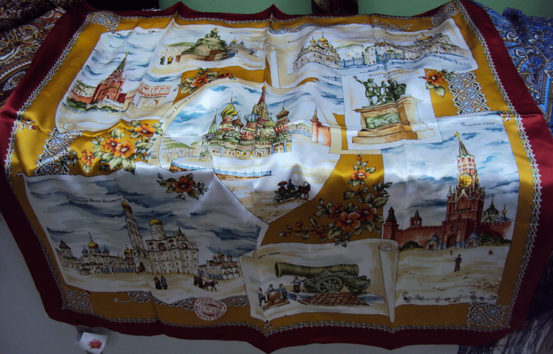 "Кремль"- роскошный платок! Я на него смотрела в Ветошном, но купила "Промыслы Подмосковья"- тоже очень хорош. Всего ведь не укупишь! :)
