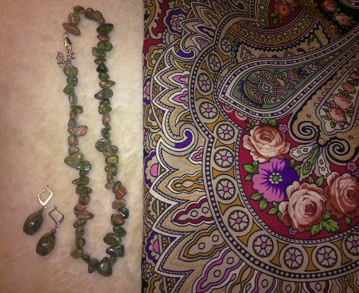 И сразу хочу исправиться. В предыдущем моем сообщении на фото -- никакая не яшма, никакой не гелиотроп (как мне его/её продавали). Это унакит -- тоже хороший камень, но встречается чаще, чем гелиотроп