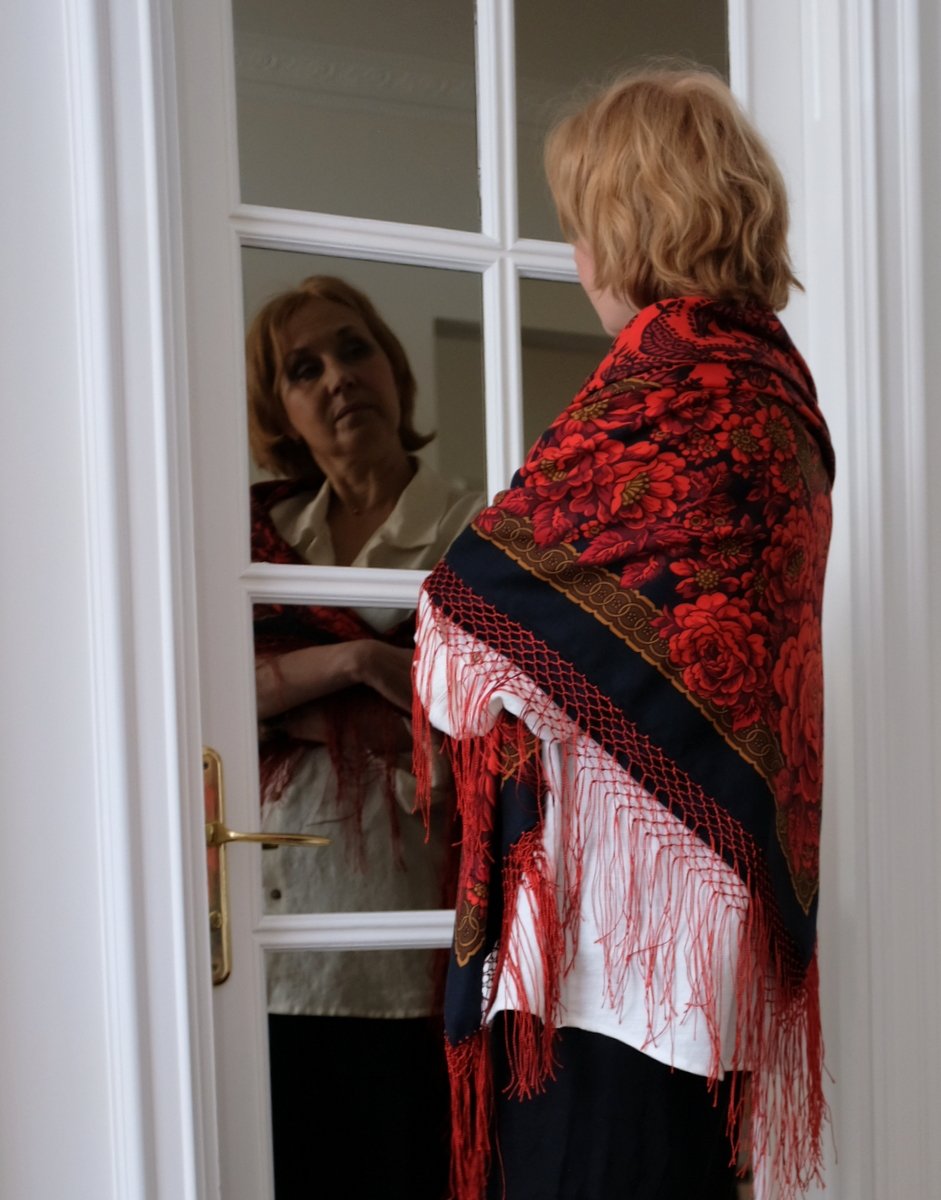 Эта же шаль при другом освещении на Кате и на Тане. Классные такие. Так приятно увидеться.