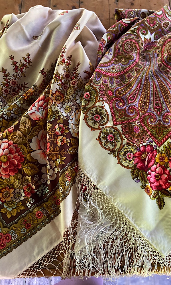 Демонстрируем ношение платков и шалей.