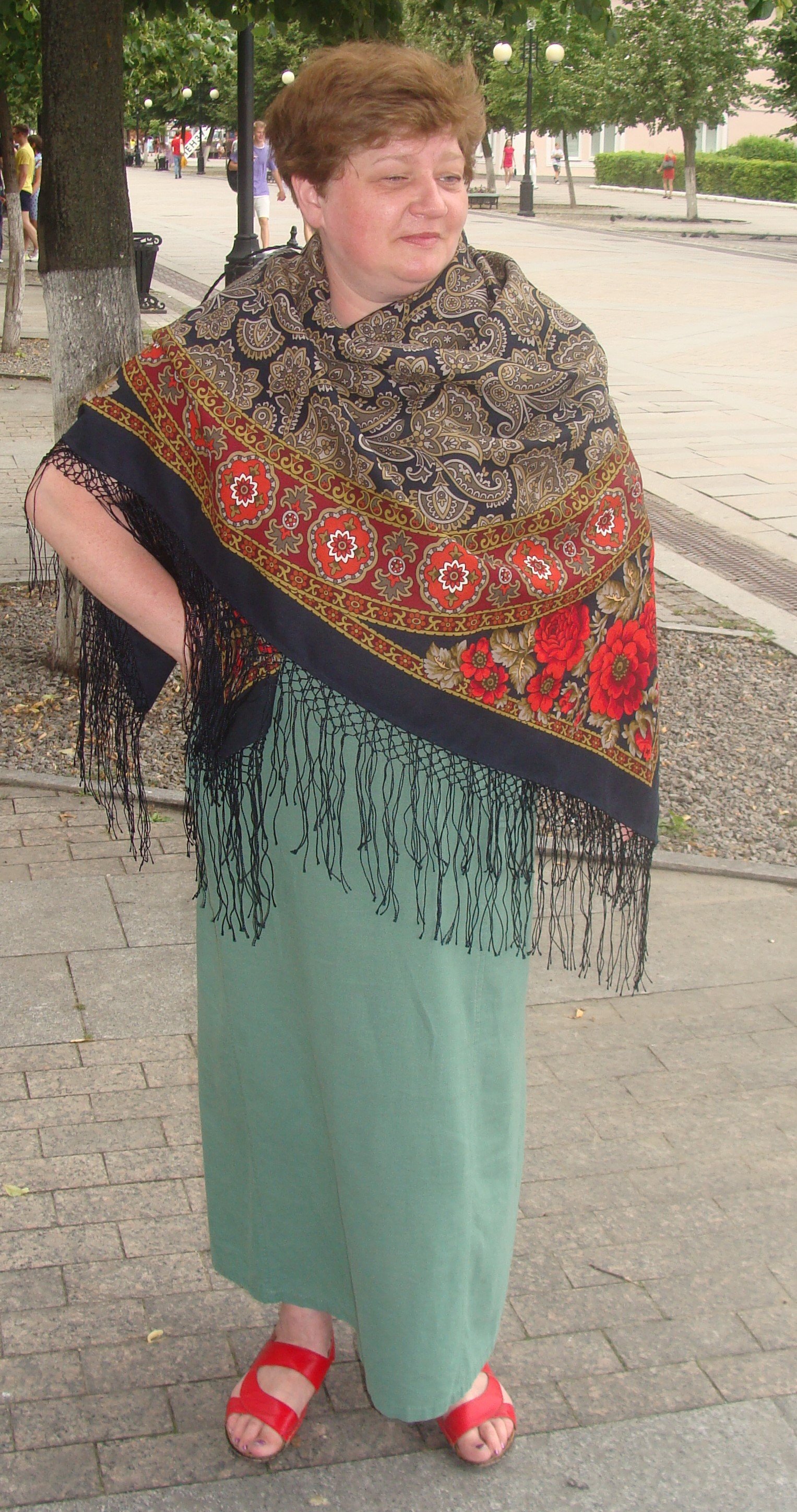 Цветущий сад-2 я взяла, чтобы сравнить новую печать со старой. В саратовском магазине новый платок мне показался более по цвету насыщенным, более горчичным. Но увы, и этой шали в Пензе не оказалось