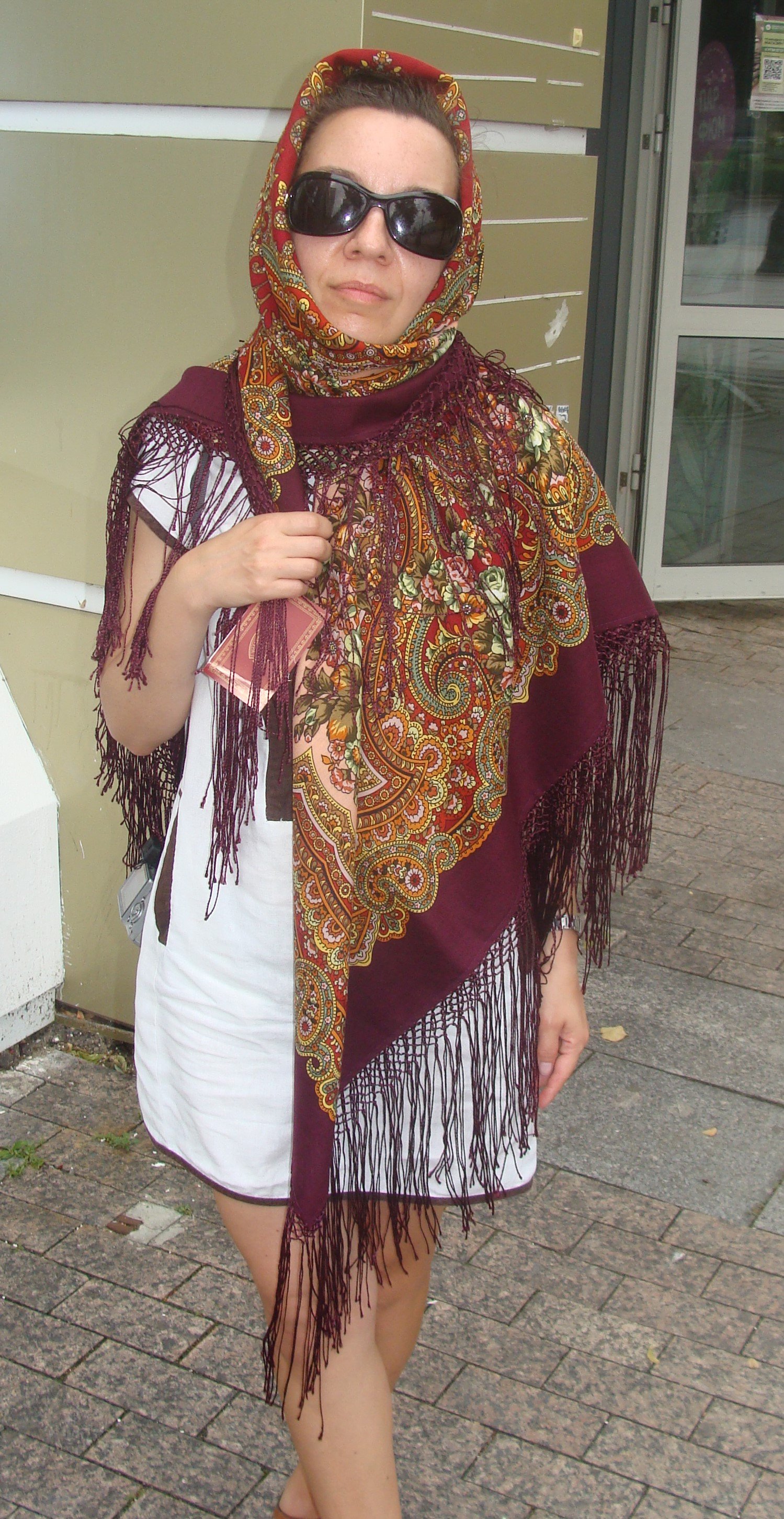 Цветущий сад-2 я взяла, чтобы сравнить новую печать со старой. В саратовском магазине новый платок мне показался более по цвету насыщенным, более горчичным. Но увы, и этой шали в Пензе не оказалось