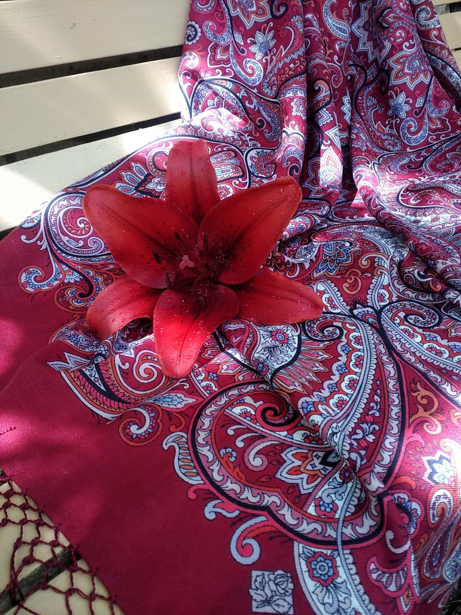 Какой красивый платок вы приобрели! Цвета необыкновенные! Ягодный, малиновый, спелый, сочный. И на мой взгляд, совсем не тёплый, а холодный. Чёткий контур придаёт графичности. Поздравляю с покупкой!