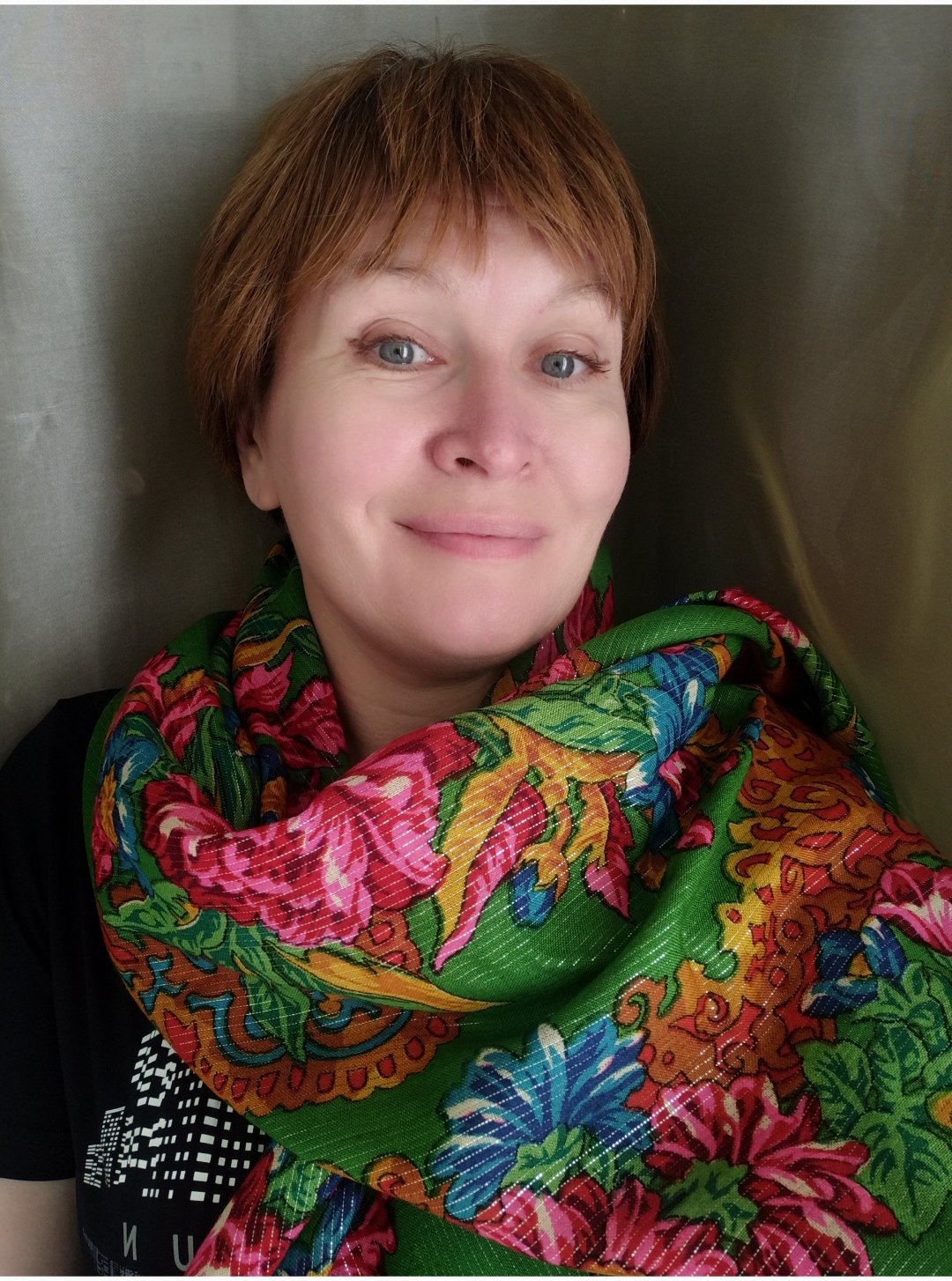 И глаза в тон платка! Здорово!