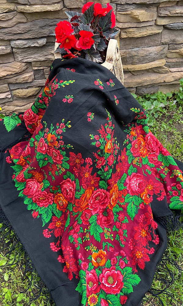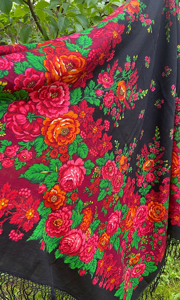 Под впечатлением от Боярыни решила показать старинку того же автора Ливадия. Шаль с огромной энергетикой! Вот кажется и не мое вовсе на первый взгляд, а накинешь и чувствуешь сразу прилив сил, не давит, а наоборот окрыляет, как будто, будто даёт тебе заряд бодрости, вмиг согревает! Эти невероятные живые розы!