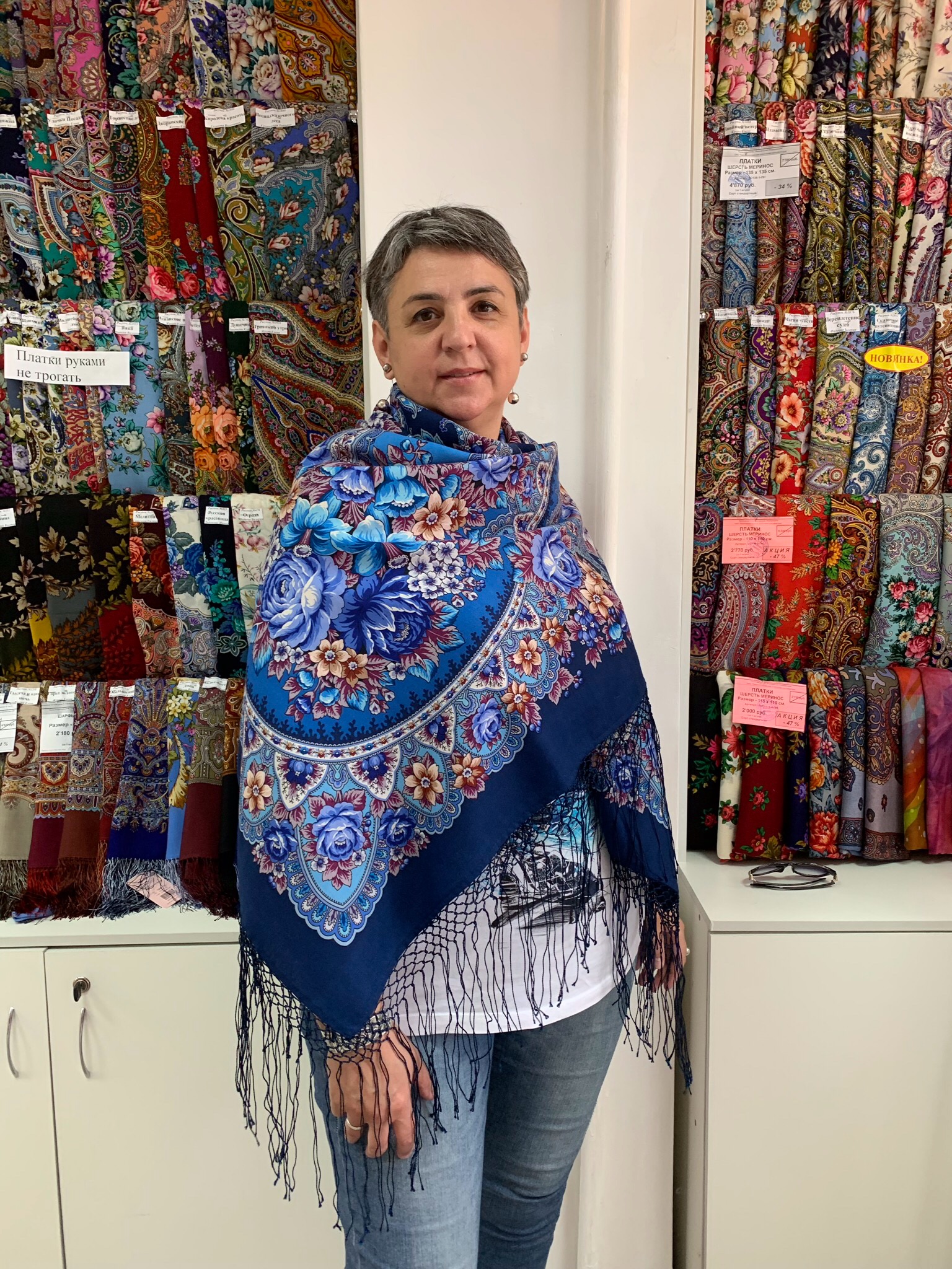 Демонстрируем ношение платков и шалей.
