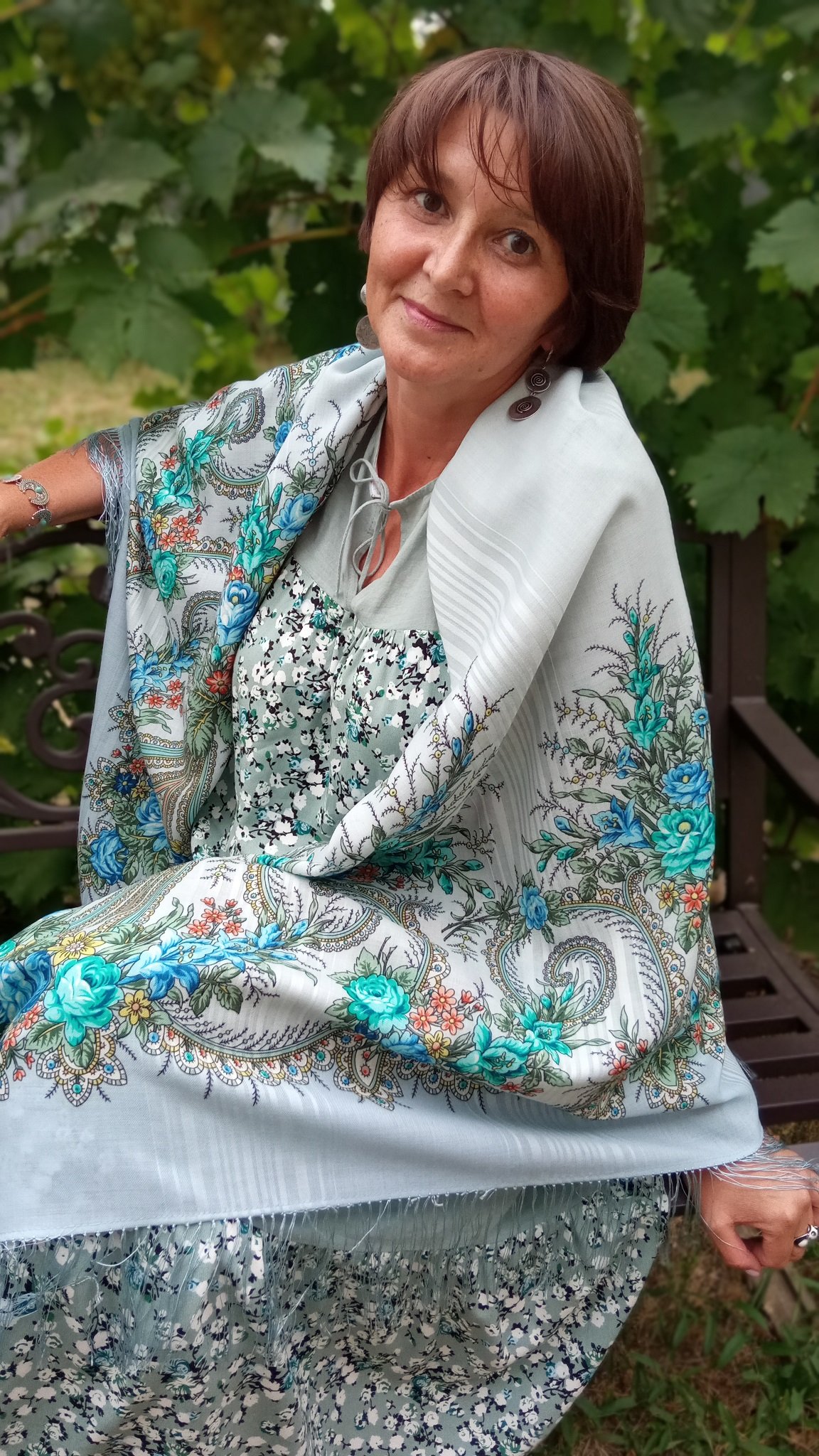 Сегодня встречалась с подругой, и в сквере даже чуток погуляли, и надо ж было такому случится - забыли меня сфотографировать в обновке! Заболтались) А все было сегодня в одежде гармонично для этой шали, и я вроде сегодня тож была ничего :roll: Но так вот всегда, всегда как нарочно. Так что верьте на слово - мне было красиво! :mrgreen: Я ее уже люблю-люблю! :<>: Стильная!