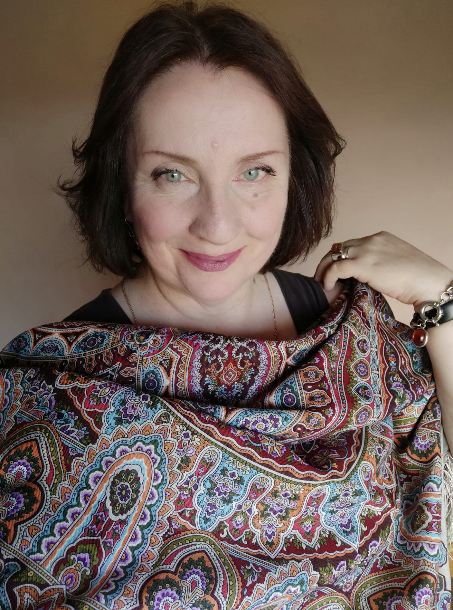 Anele_Juli,прекрасный платок,который вам очень идет! Я заметила,что нам часто идет похожее, после вашего показа Майи 24 даже чуть ее не купила,но удержалась,потому что знаю,- носиться не будет.