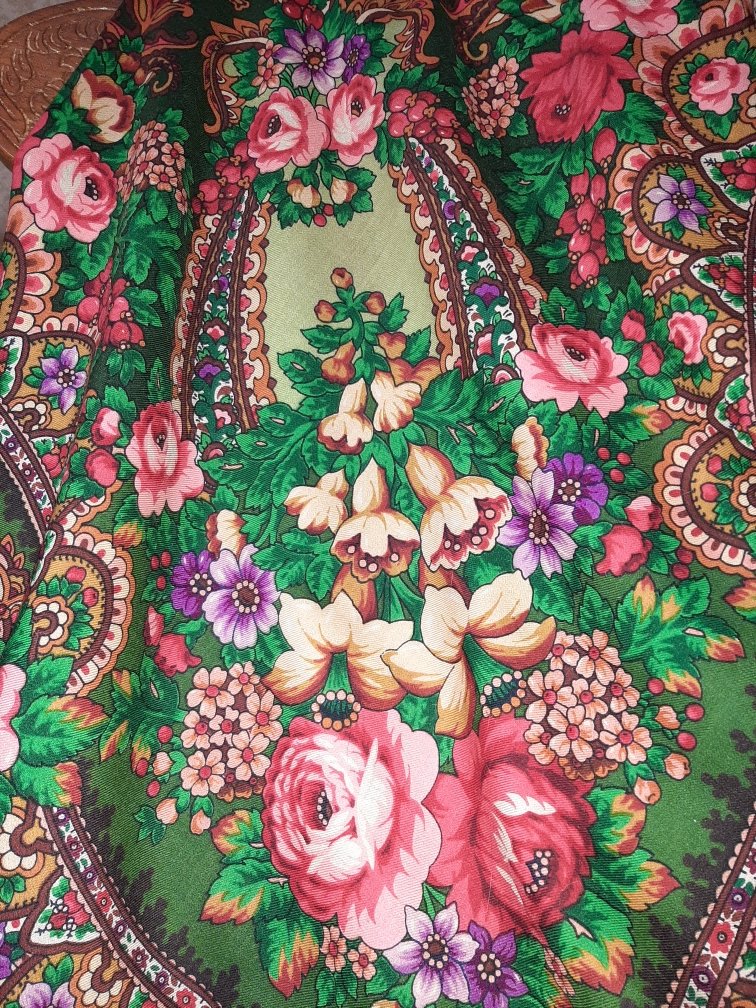 Шаль эффектная - роскошные цветы и выразительная сложная цветовая гамма рисунка. Попыталась с фотографировать, хотя цвет несколько