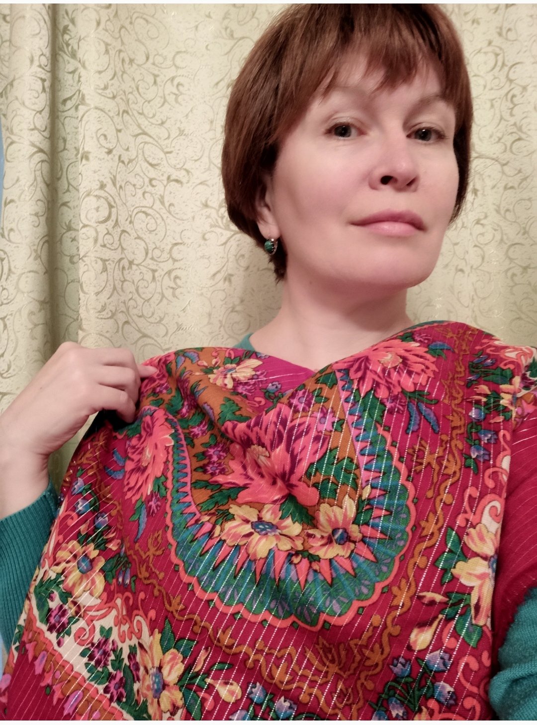 Хочется призвать всех, носящих невероятные павловопосадские платки, не бояться экспериментировать, хотя бы здесь, на форуме, в жизни уже - по ощущениям, насколько смелости хватит. Это же очень интересно! В памяти и ваши фото, Танюша, и многих других девчат форума - так платок иногда показан, что сама бы ни за что не придумала ::