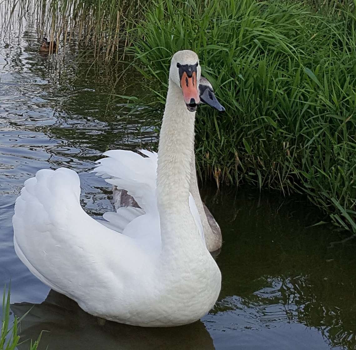 Думается, что здесь все семейство: поодаль мама, на переднем плане папа и их малыш. Лебедь- папа очень строг: сам ко мне приближался, малышу не позволял.
