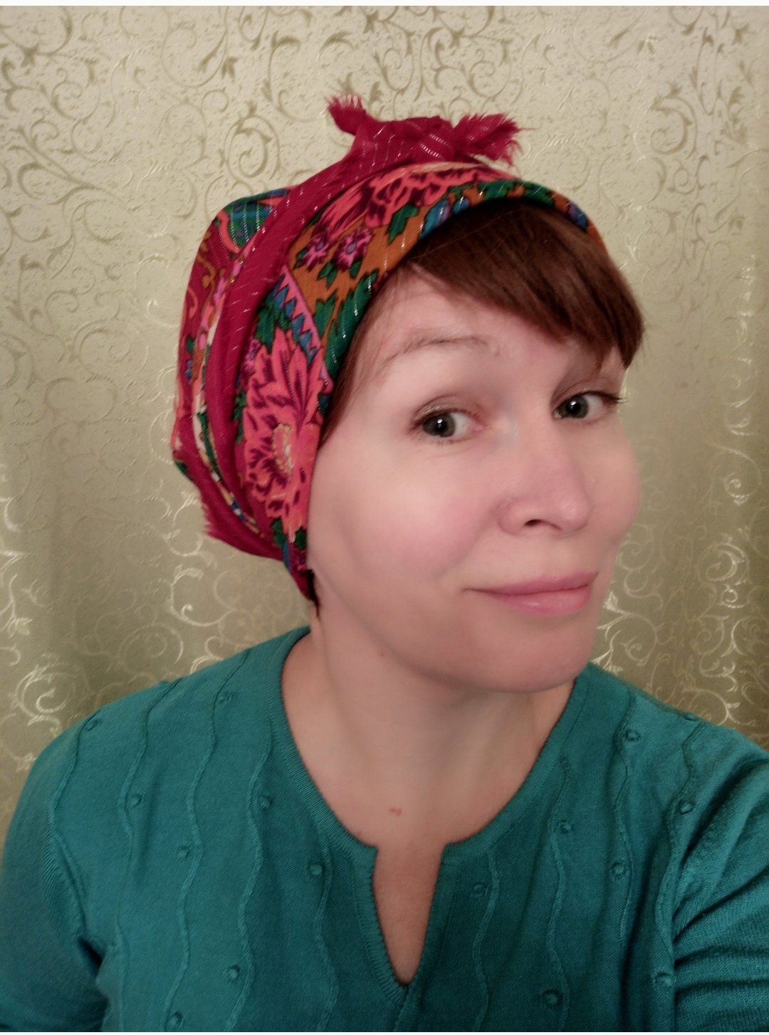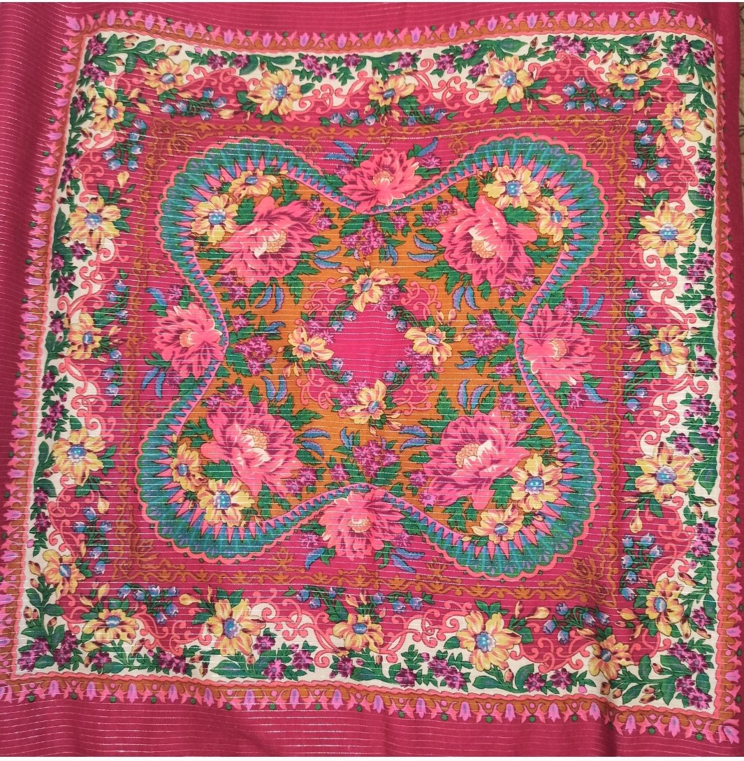 Точно, защищать платки с люрексом - сложная задача. У Кати получилось. На самом деле платки - вещь народная. Если на каком-то этапе захотелось украсить себя, помимо цветов, еще и восточным блеском - почему нет? Слов из песни не выкинешь, это было, и многие носили. И снова будут носить, мода циклична. Имею своё отношение к разного рода блестючкам: или нет совсем, или нарочито много, китч.