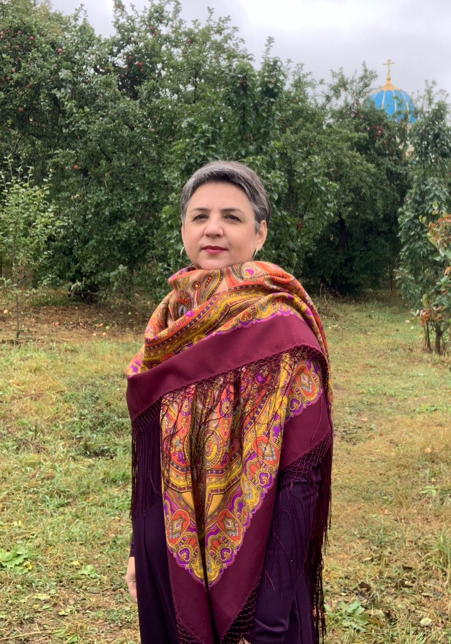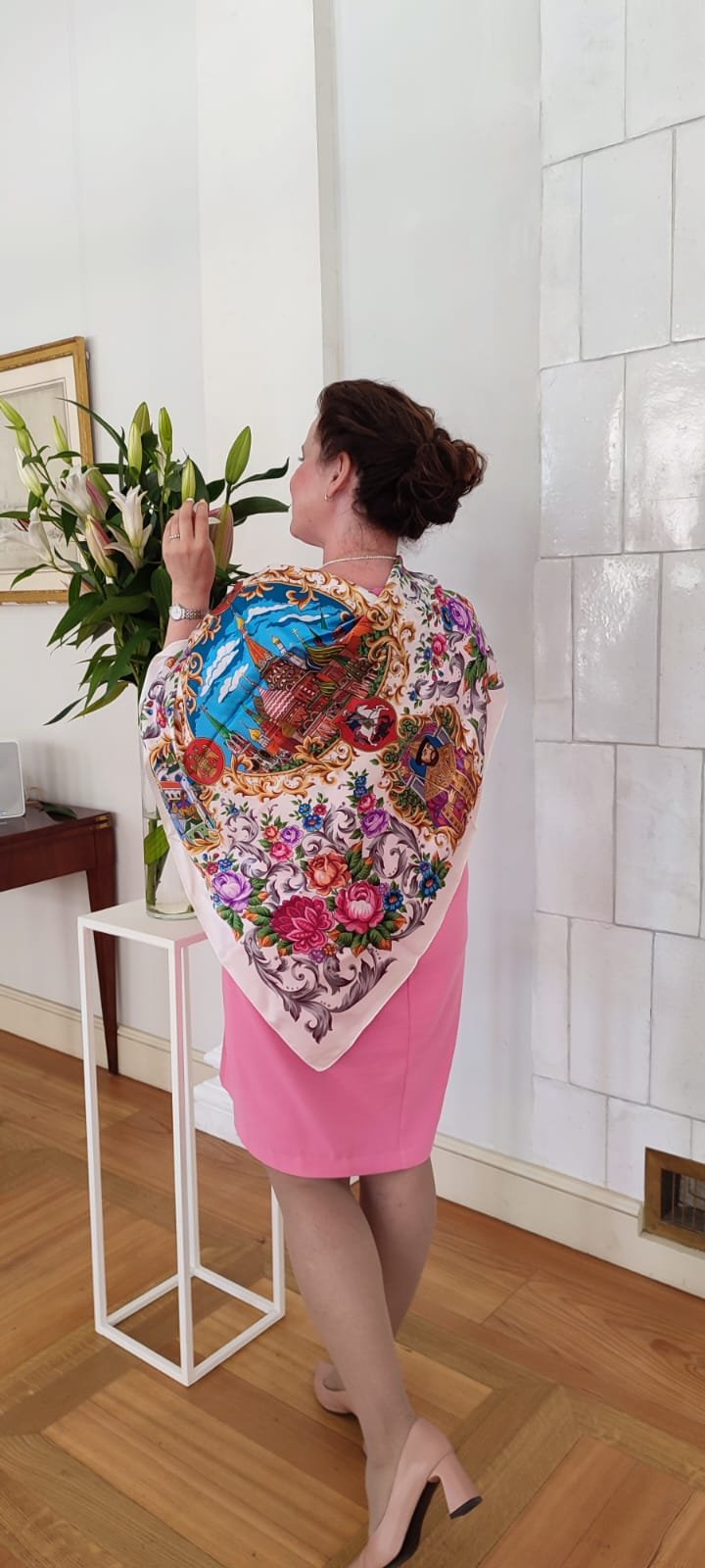 Демонстрируем ношение платков и шалей.