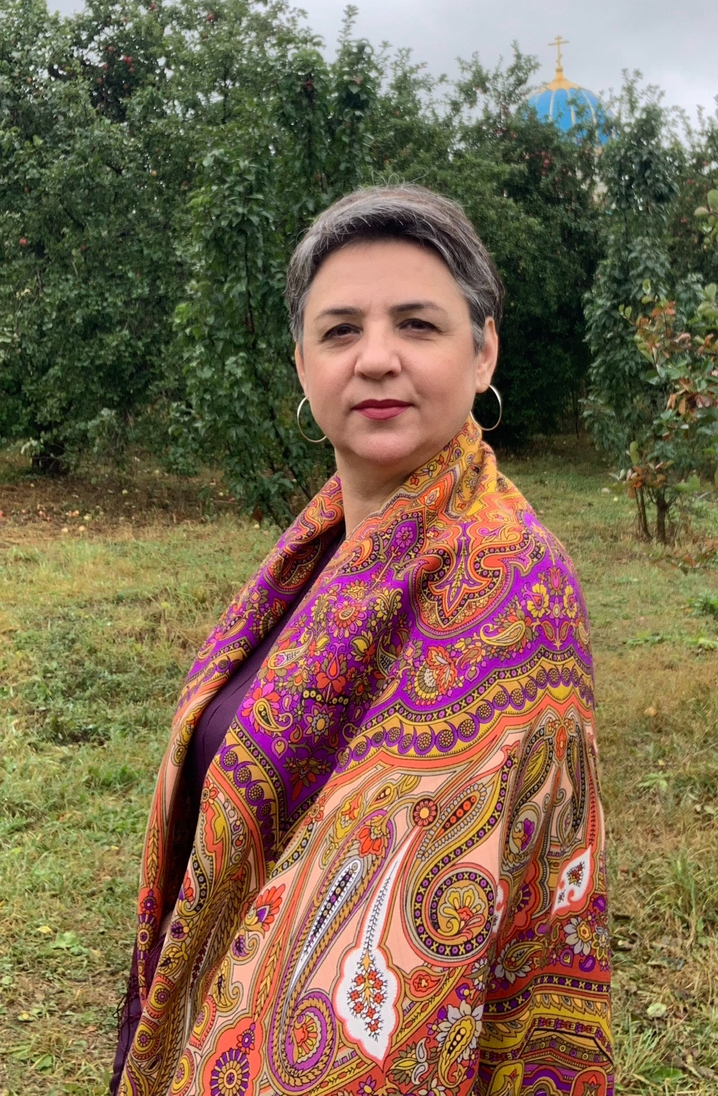 Интересный платочек Стольный град! И вы смогли найти такой приятный фрагмент к лицу - нежный такой, и голубой - к цвету глаз! Красиво получилось, очень идёт!