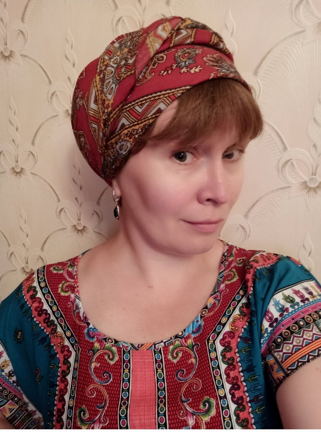 Примерки с домашней туникой. Уже и дома без платка - что-то не слишком нарядно!.. :lol: