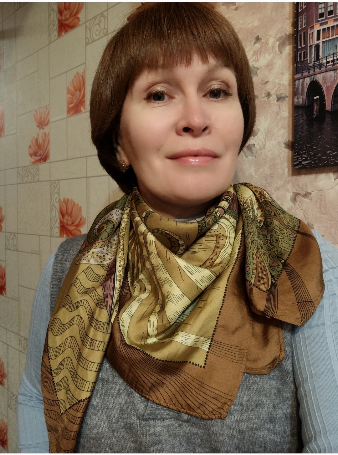 И платки носим схожие, даже сейчас в одну минуту выложили фотографии коричнево-зеленых! Надюша, привет! ^a