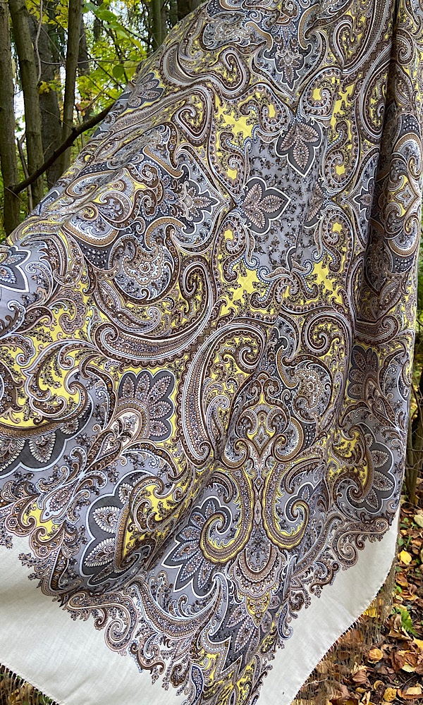 Долго я присматривалась к этому платку, уговаривала себя, что можно обойтись. Не поддалась на уговоры. Назначила этот колорит осенним