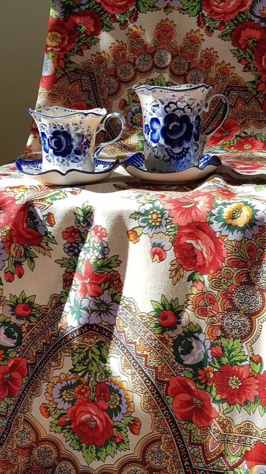 Розы на чашечках и шали созвучны!