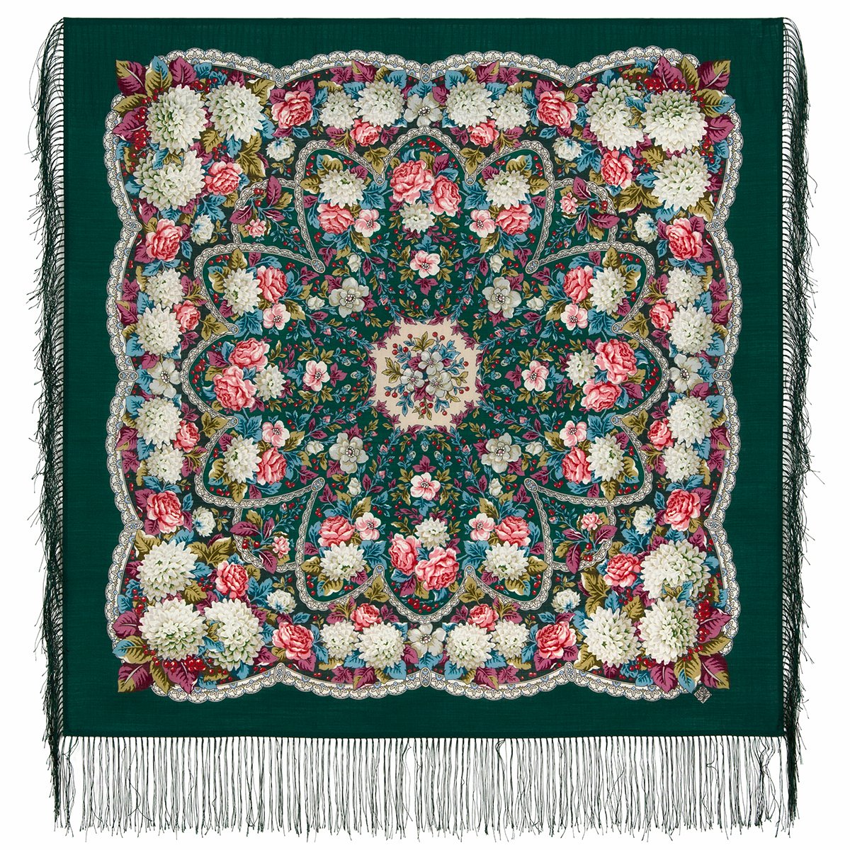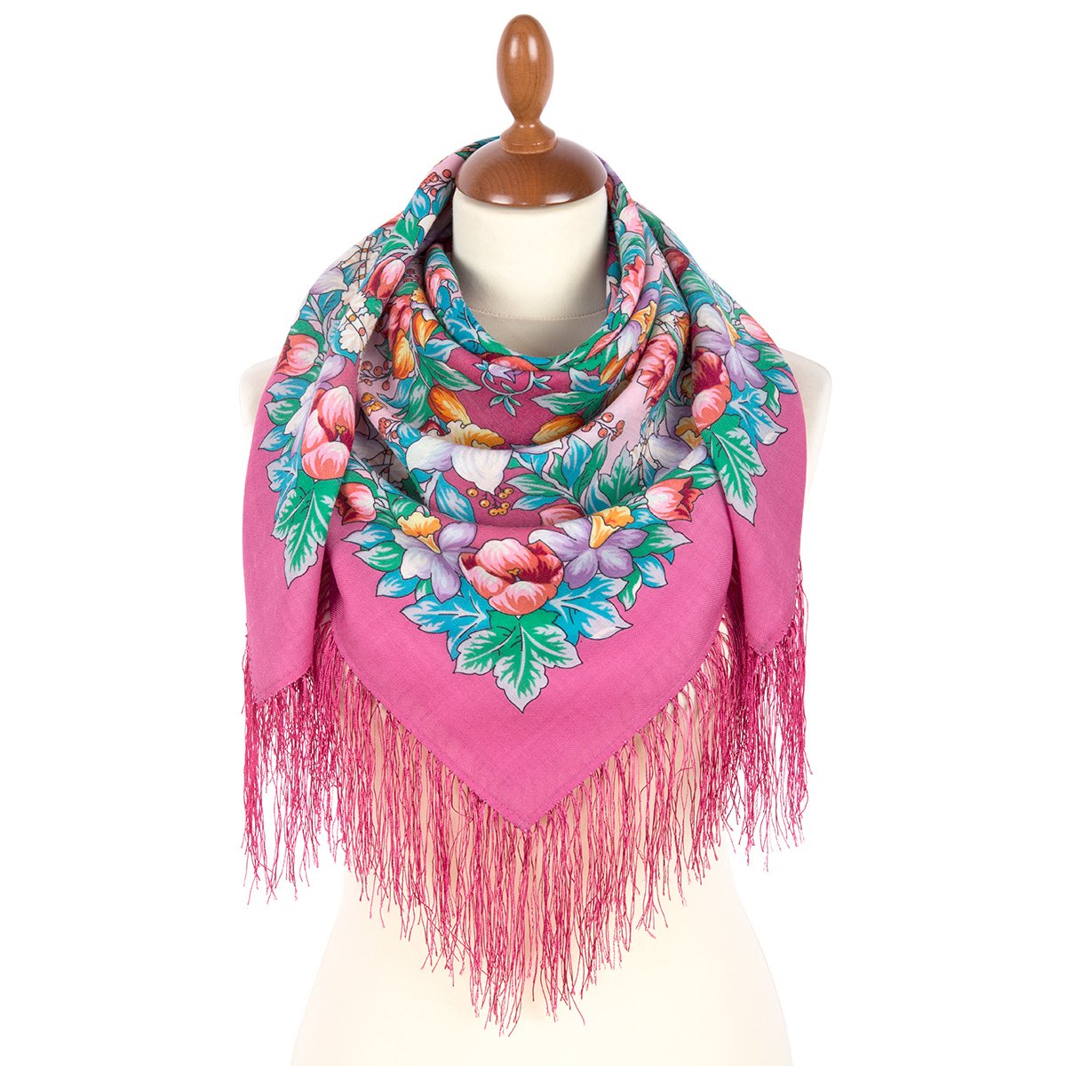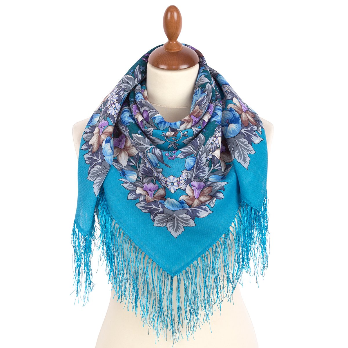 Платок шерстяной с шелковой бахромой, 125х125 см