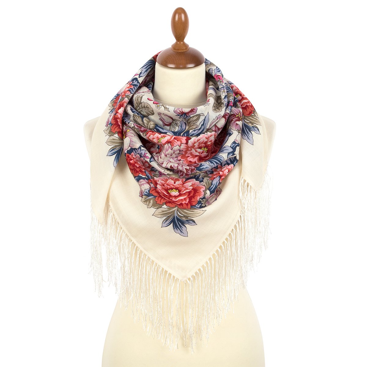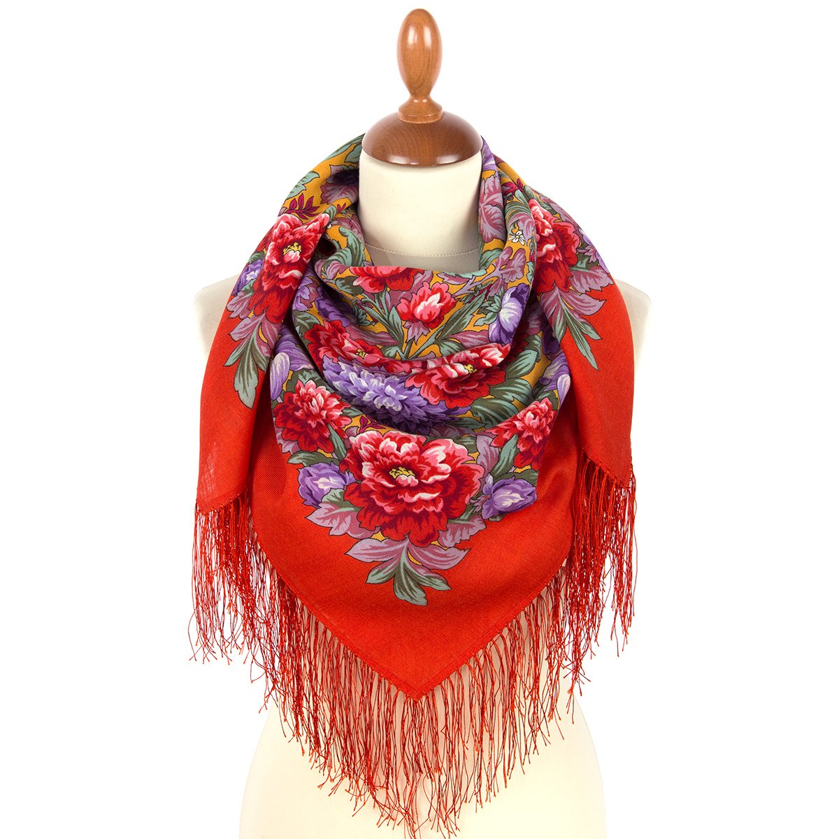 Платок шерстяной с шелковой бахромой, 89x89 см