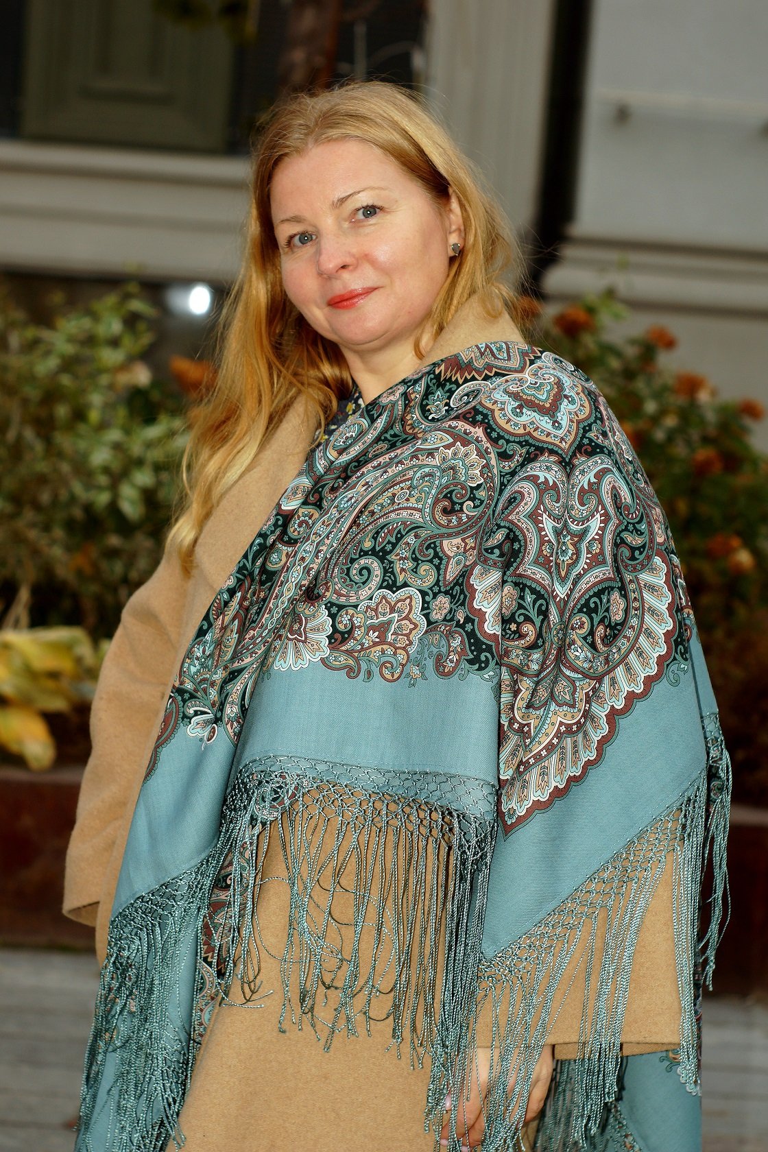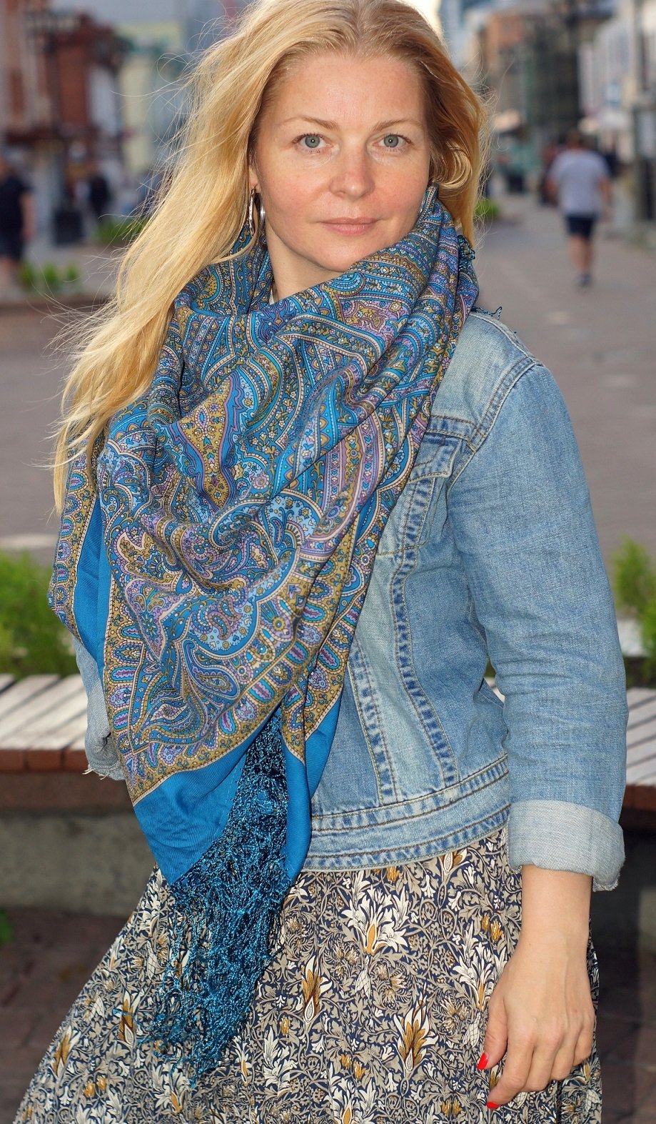 Платок шелковый (крепдешин, бахрома) "Цветущая весна", вид 8, 130х130 см