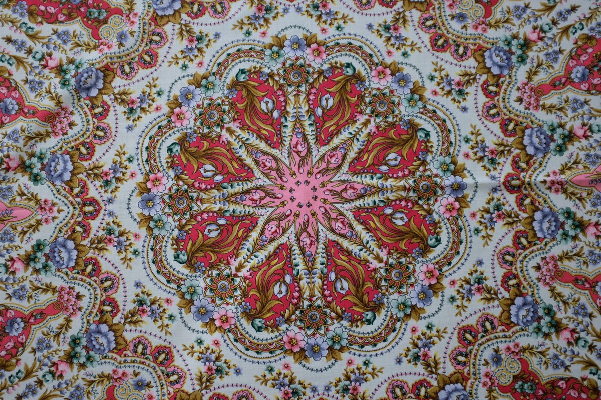 Девочки, спасибо за внимание к выбранному мною колориту Половодья чувств. Я еще эту шаль не надевала, пока просто лежит для любования, и вот какое у меня пока от сложилось впечатление - шаль настроенческая. Не знаю как это точно описать словами, потому что вообще-то все наши шали создают и несут каждая своё настроение, но вот эта как-то особо. Может быть, потому что для меня все колориты Половодья чувств выбор, скажем так, не стандартный, выбивающийся из моей стандартной цветовой гаммы в одежде. Но, вот захотелось чего-то такого, нежного. Пусть создаёт настроение. К тому же именно на этом колорите очень красивые и необычные оттенки розового в медальонах. Такого цвета больше нигде из платков не встречала.