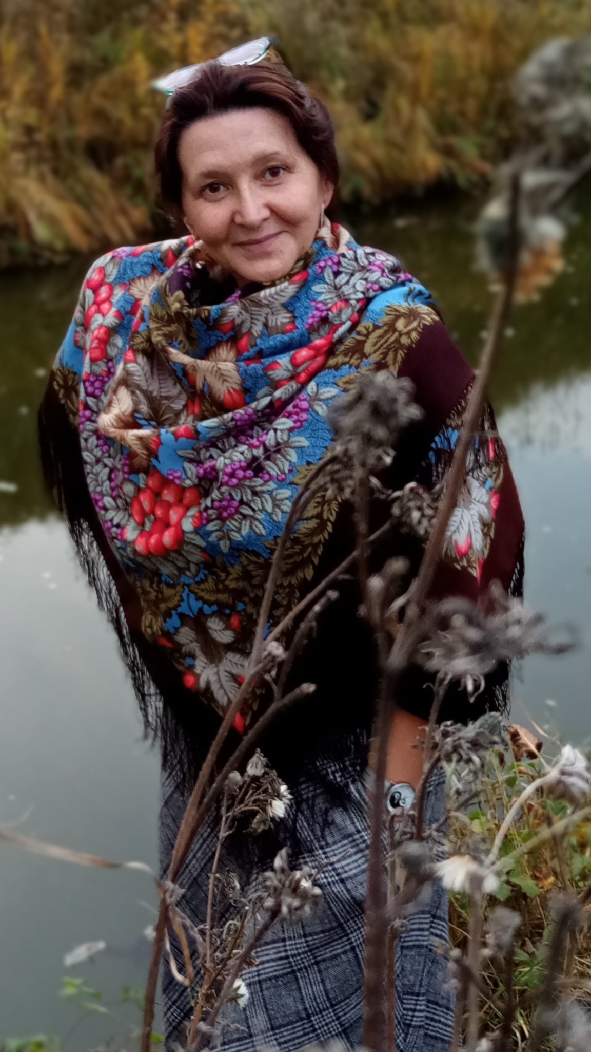 Таня Имбирь, Танечка красавица, Имбирь как же прекрасен на голове. Ну умеешь носить. Мастер! Такой чистый синий подсветили лицо, на самом деле наши шали имеют омолажмвающее действие!