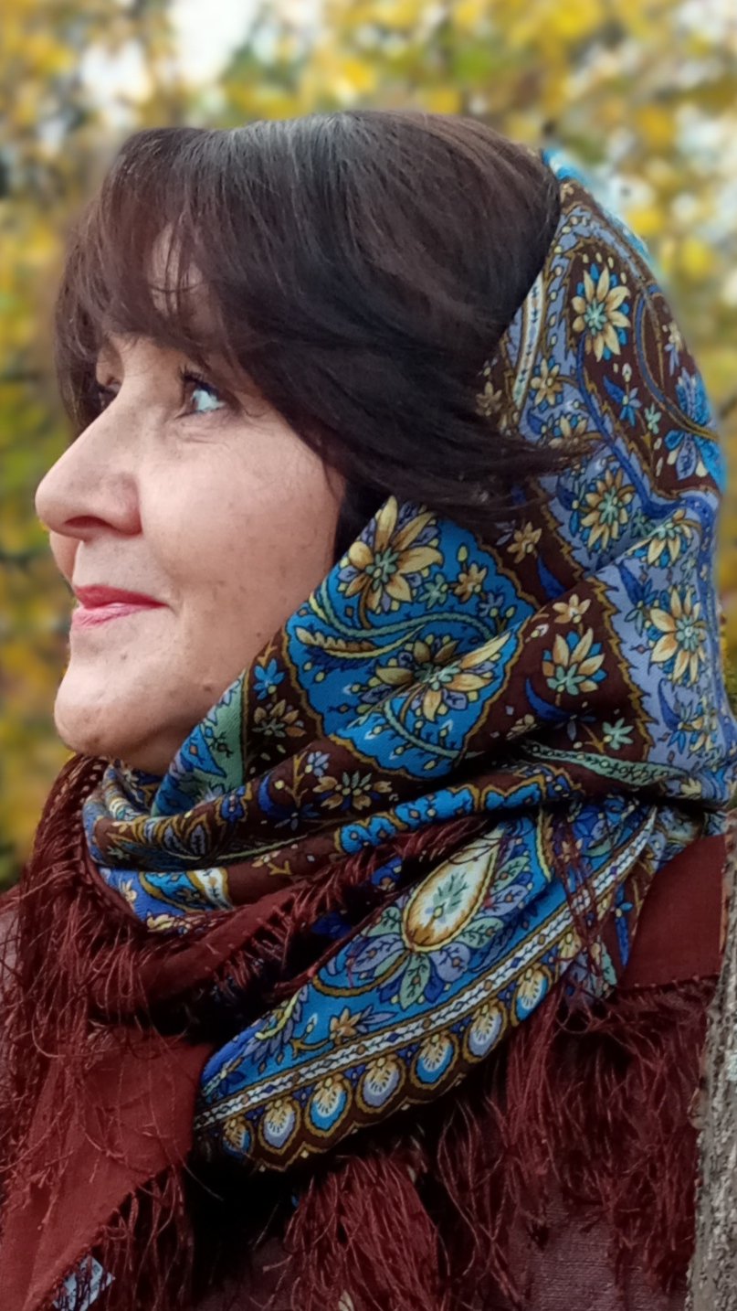 Таня Имбирь, Танечка красавица, Имбирь как же прекрасен на голове. Ну умеешь носить. Мастер! Такой чистый синий подсветили лицо, на самом деле наши шали имеют омолажмвающее действие!