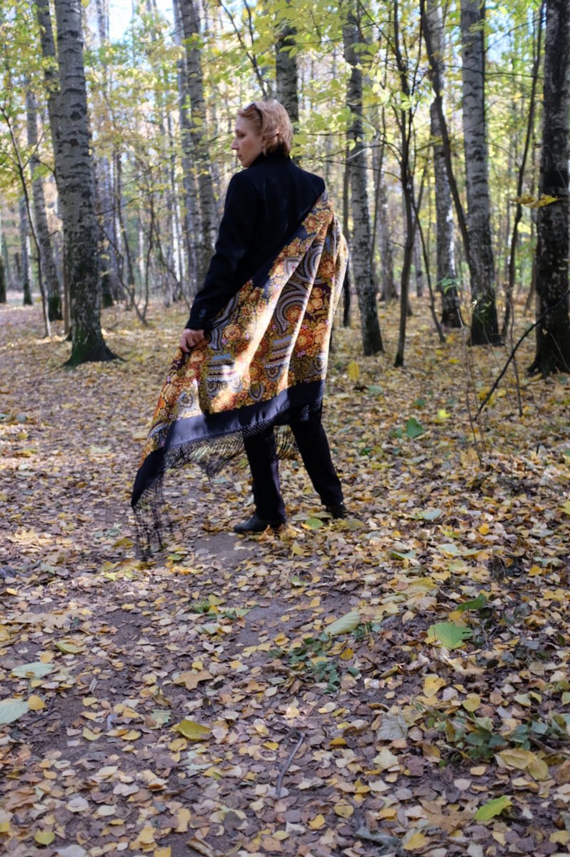 Фрекен_Жюли _Юлия, раскошная шаль Боярыня. Красивый показ ! Осень и Боярыня неразделимы! Любование!