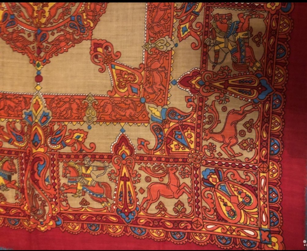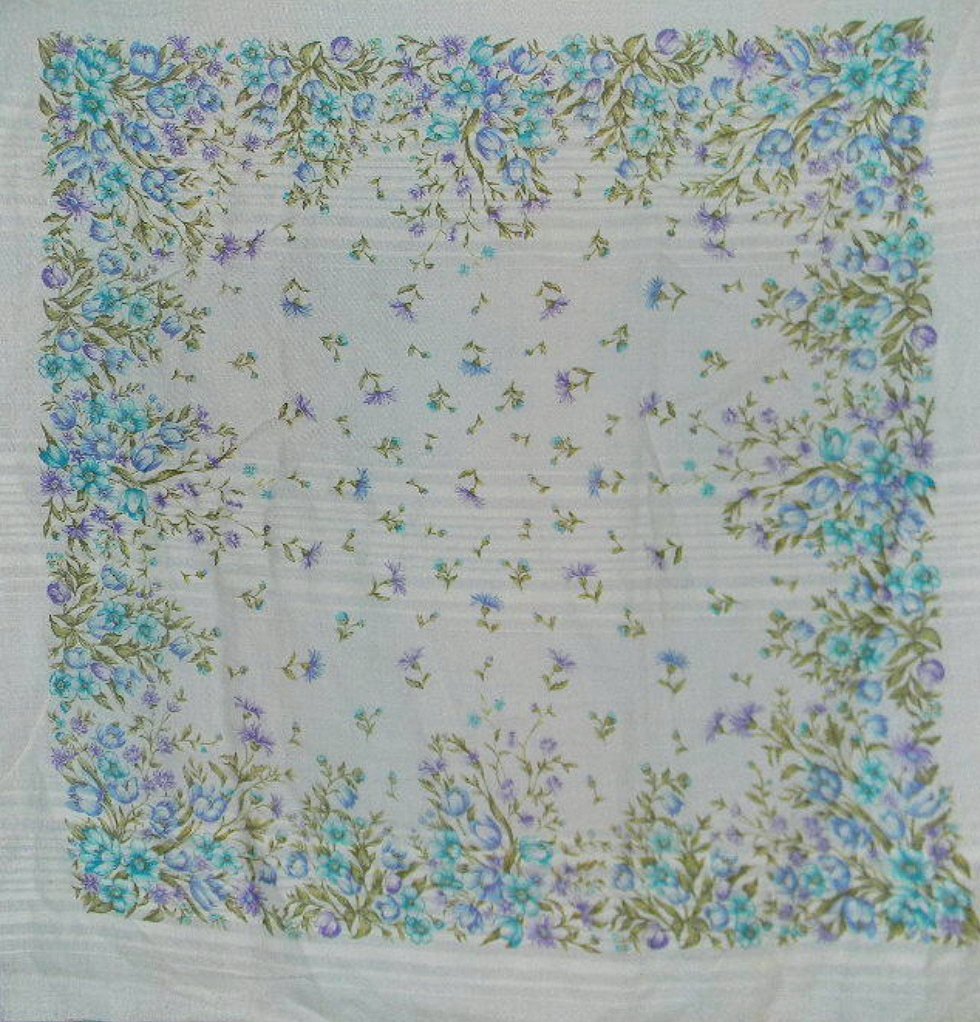 Попался мне вот такой лоскут, который планирую подрубить и сделать из него полноценный платок. Это экспериментальный выпуск, в тираже не печатался. Размер 75*75.