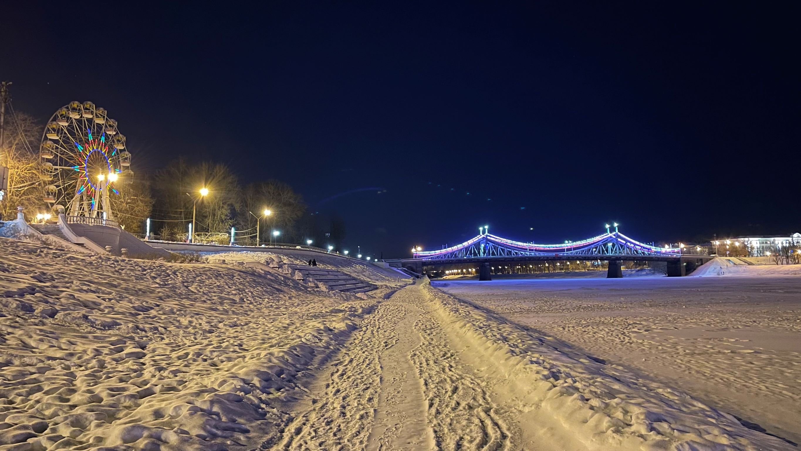 О, старый мост в Твери! В огоньках весь. Надо съездить погулять.