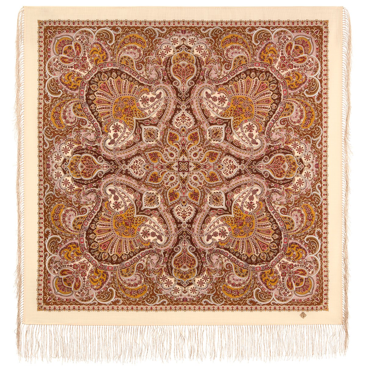 Платок шерстяной с шелковой бахромой, 146x146 см