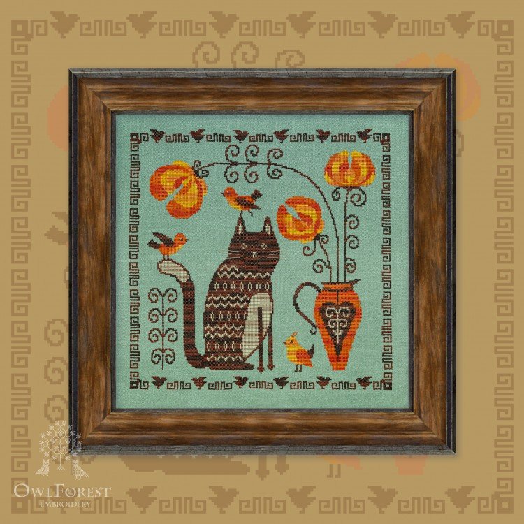 "Совиных" схем огромное количество, совы в моде годами, их любят вышивать. Не назвала бы себя поклонницей совиной темы, но эта конкретная сова похожа на моего кота, тем, наверное и покорила))