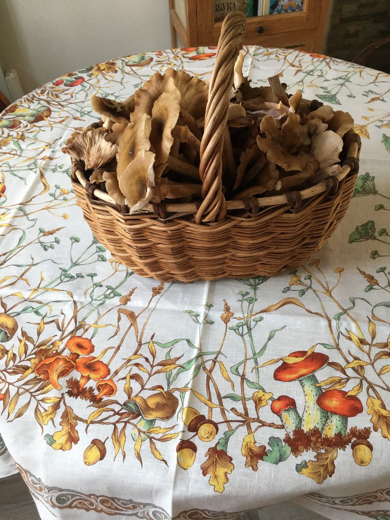 А вообще мне мама давным-давно в качестве приданого много скатертей отдала, от лучших льнокомбинатов, 1950-70-х гг. Вот это действительно СКАТЕРТИ, у нас в семье всегда только такие и были, в т.ч. довоенные и даже дореволюционная одна. Там лен не чета тому, что использует ППМ. Павловопосадский лен грубый и рыхлый, самого простого полотняного переплетения, просвечивает, легко мнется и не очень хорошо гладится, а уж если пересушить…Про примитивную подшивку, кривые стороны и углы не высказался только ленивый. А в тех скатертях лен сложного переплетения типа жаккарда, двуцветный, с лица и изнанки рисунок разный, ткань не толстая, но плотная, не просвечивает, с шелковистым блеском. По кайме другая выработка, мережка, подгибка широкая, углы конвертиком. И они неубиваемые – после залития вусмерть чем угодно от красного вина до чая и кофе и основательного кипячения в персоли на каждые праздники, и так десятилетиями – опять как новые, и сносу им не видно. Так что маминого приданого не только на мой век хватит, а еще и детям-внукам останется.