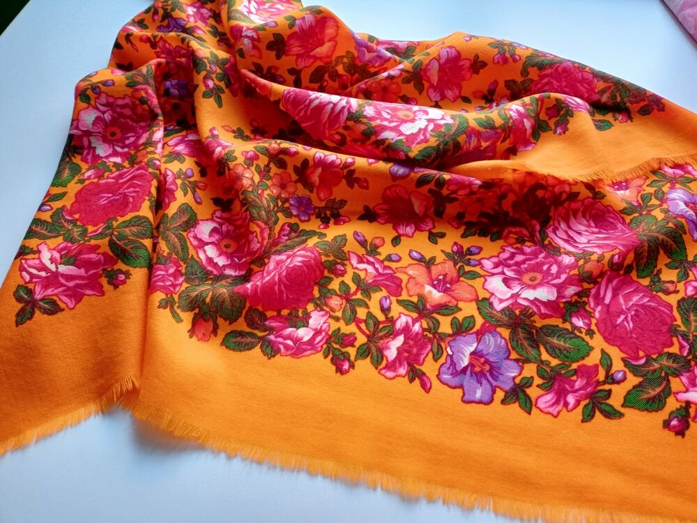 Прелестный платочек, люблю стариночки с оранжевым грунтом