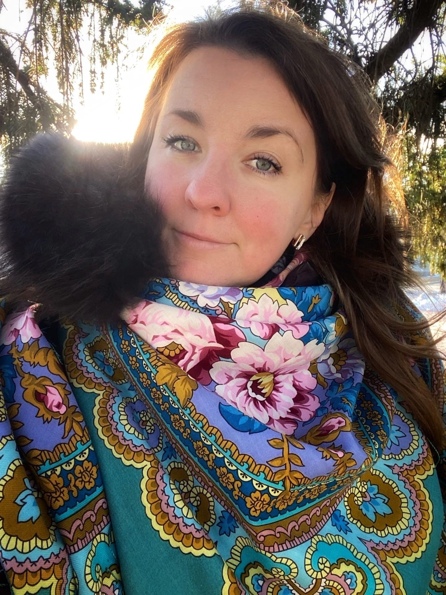 Белгородочка, как мне понравилось Диво дивное на вас! Увлечение шалями научило, что часто платки идут не столько к пресловутому цветотипу, сколько к образу в целом... или к характеру...по-разному это все бывает. Но вот почему-то именно эта темпераментная шаль очень идет вам. На мой вкус, даже больше, чем чудесный политкорректный Волшебный узор".