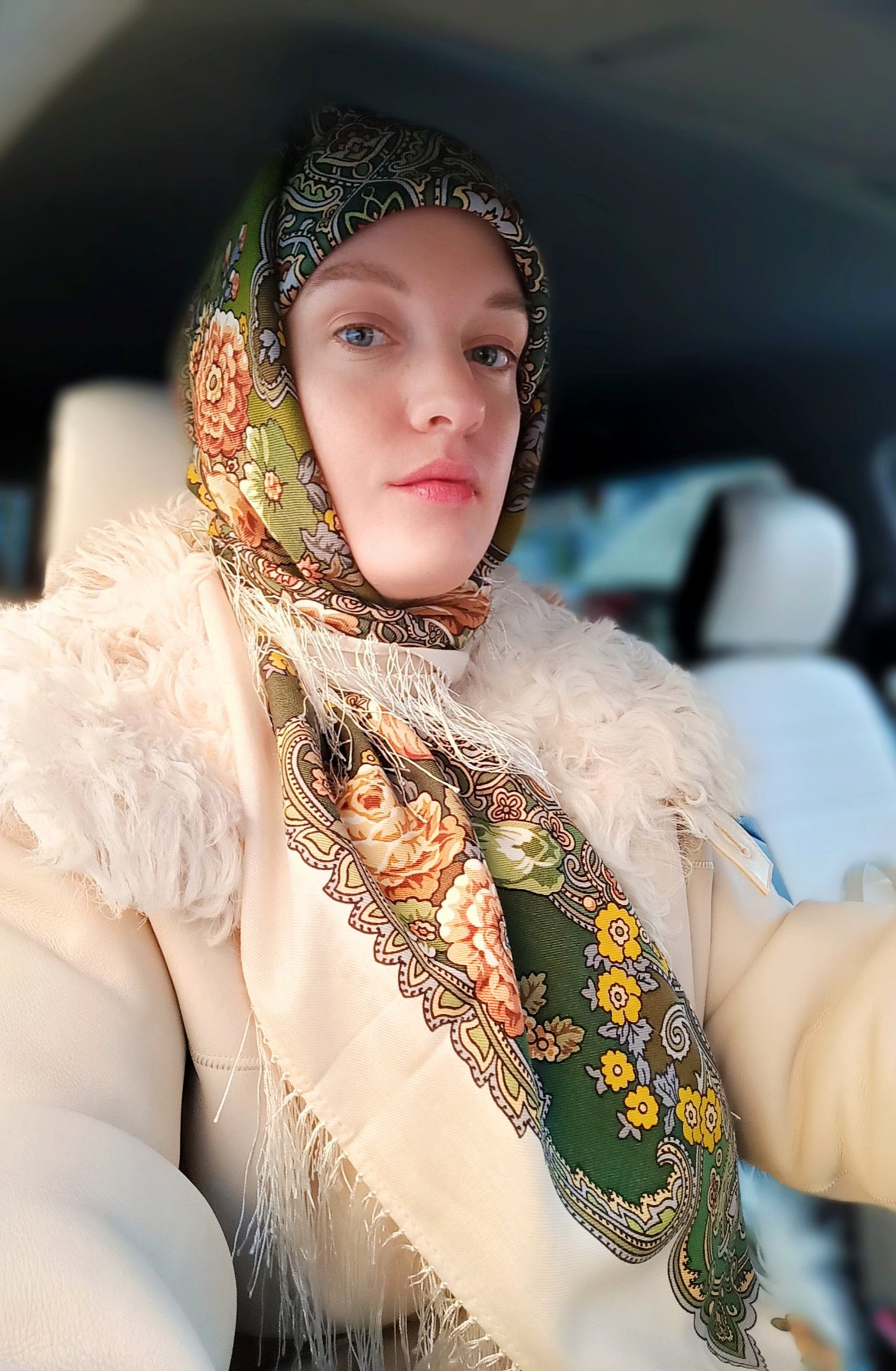 Катя, прекрасно! ^% Последнее фото, будто как барышня из Института благородных девиц. Ах, как бахрома красиво легла на изящный изгиб талии! И этот "капюшончик" шали, и перекинутый хвостик - всё так прекрасно и неожиданно ново. Любуюсь на эту фотографию, на этот образ!