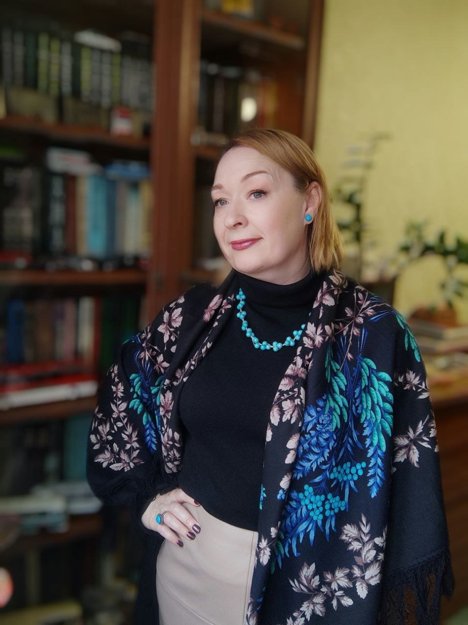 Вера, какая красивая Волшебница на вас, вот прям настоящая Волшебница, добрая, немного таинственная и загадочная. Очень нравится этот вариант намотки, когда лоб закрыт, никак пока не научусь так делать.