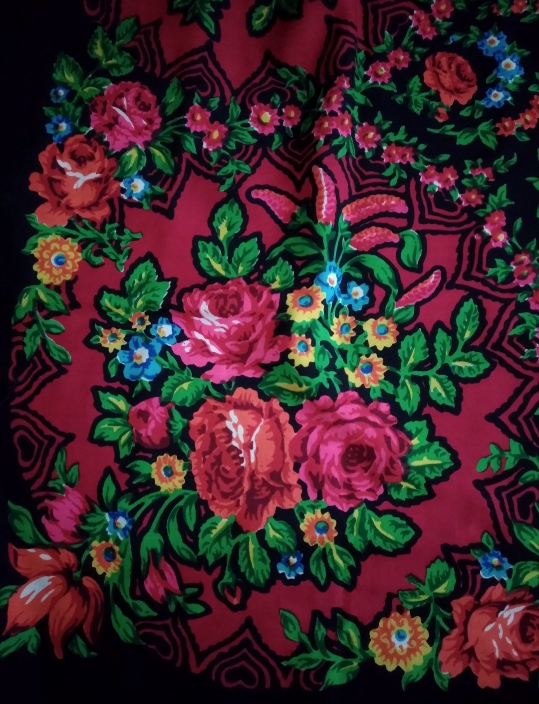 Платки, как на фотографии Гостья-весна довольно часто всплывают на европейских торговых площадках вторичного рынка. И еще некоторые, отнесенные у нас на форуме к польским по вшитым этикеткам. И вот именно в связи с этим моментом я давно задаюсь вопросом: а где другие платки, более раннего или более позднего периода? Польские или чешские? Есть много платков с бахромой с перепонкой или крупноячеистой. Некоторые из них повторяют павловопосадские рисунки, некоторые что называется "по мотивам", некоторые в таком же стиле, но рисунки оригинальные. Часть из них, я думаю, швейцарские и австрийские, возможно немецкие, на них иногда тоже есть этикетки на немецком языке с названием фирм. И всё. Другие платки мне не встречаются. Какое-то время назад я просматривала чешские и польские сайты подобные авито. Не смогла тогда найти ничего ни "антикварного" ни современного восточноевропейского происхождения. Это, конечно, не отрицает факт производства платков в этих странах, но возможно искать надо несколько в другом направлении. Я тогда забросила это занятие и пока к нему не возвращалась. Если появится хоть какой-то "след", с удовольствием займусь его распутыванием.