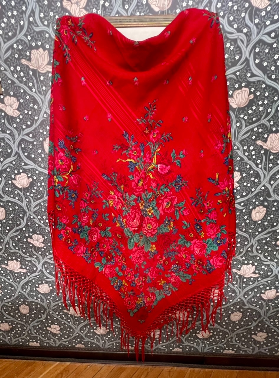 Радуюсь пополнению. Вот номер в архиве не назову. Скажу лишь, то в виртуальной коллекции представлено целых три колорита. Красный теперь у меня. Красив до невозможности. Историю этой шали рассказала в Дореволюционных платках подробно. Продолжаю исследовать.