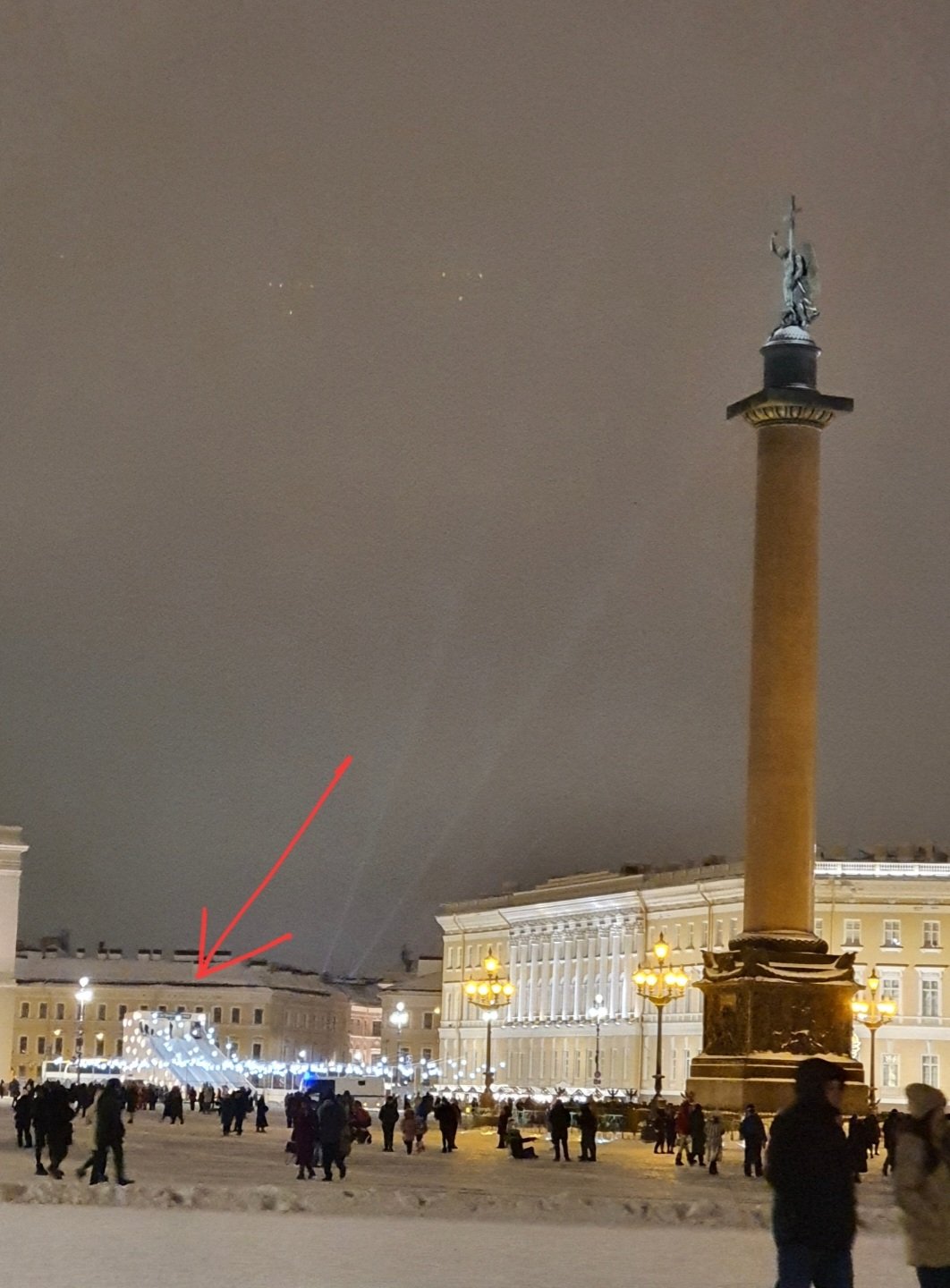 Позади горки Певческий мост. Кто докатится до Столпа - тому приз: повторное катание вместе с Александром Дмитриевичем Бегловым (шутка, никто не докатится).