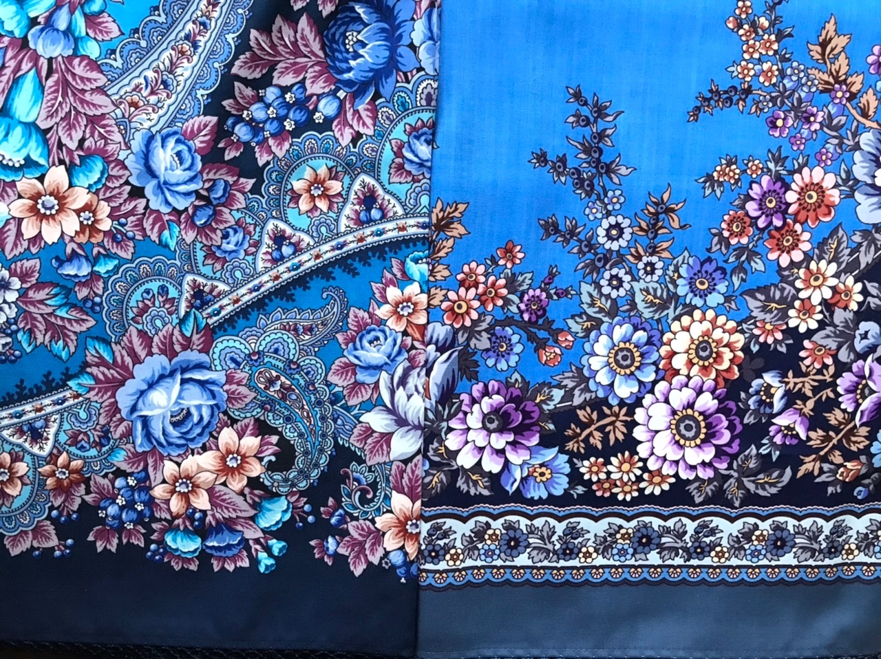 Впечатление, что в одной стороне объемный рисунок ( К.Зиновьева), и в него можно "провалиться", а с другой - плоский. Это как с некоторых платков цветы/бутоны вот- вот упадут или на ветру зашевелятся.