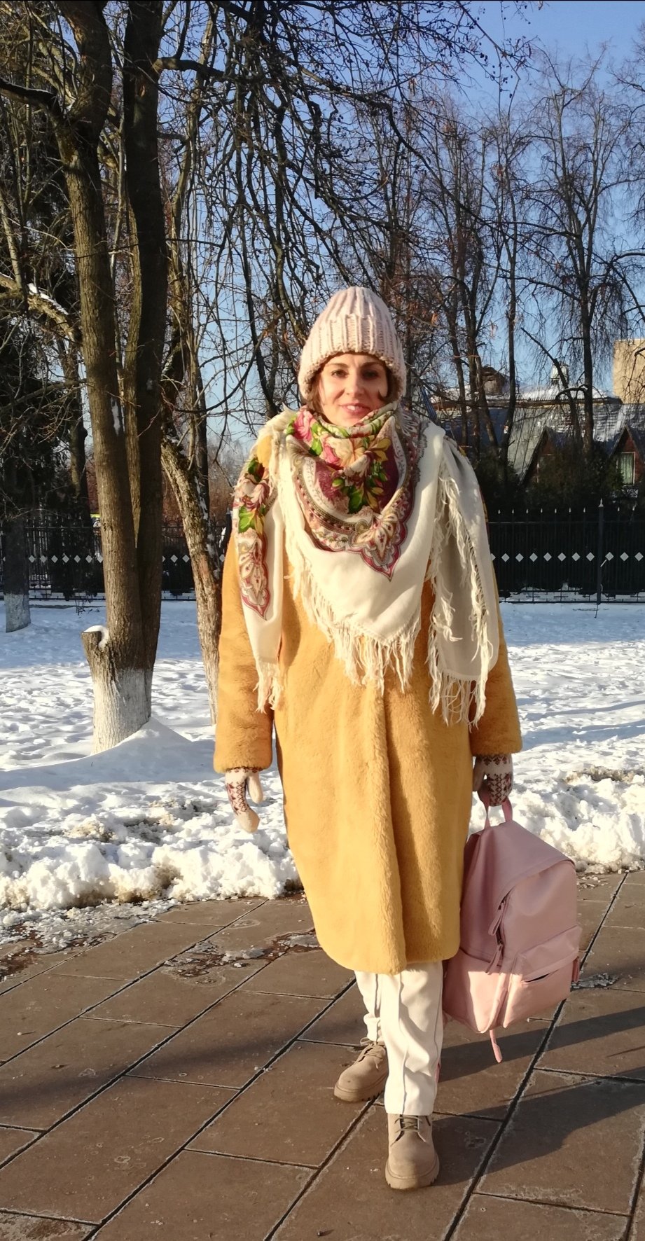 С дубленкой намотала не очень удачно, были на экскурсии по новогодней Москве. Именно Отрада оказалась близка духу этой экскурсии.
