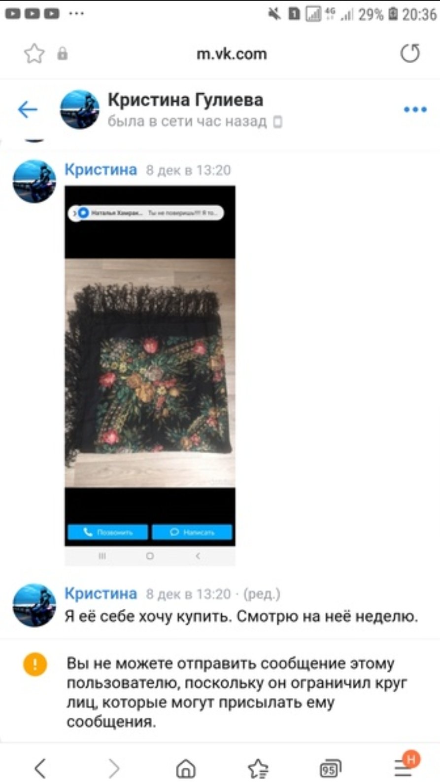 Здравствуйте девочки. Анна, ВАМ НЕ СТЫДНО???? Я ВАМ КУПИЛА ЭТО ЭТОТ ПЛАТОЧЕК, ВЫ заблокировали меня и я вымогала деньги?????